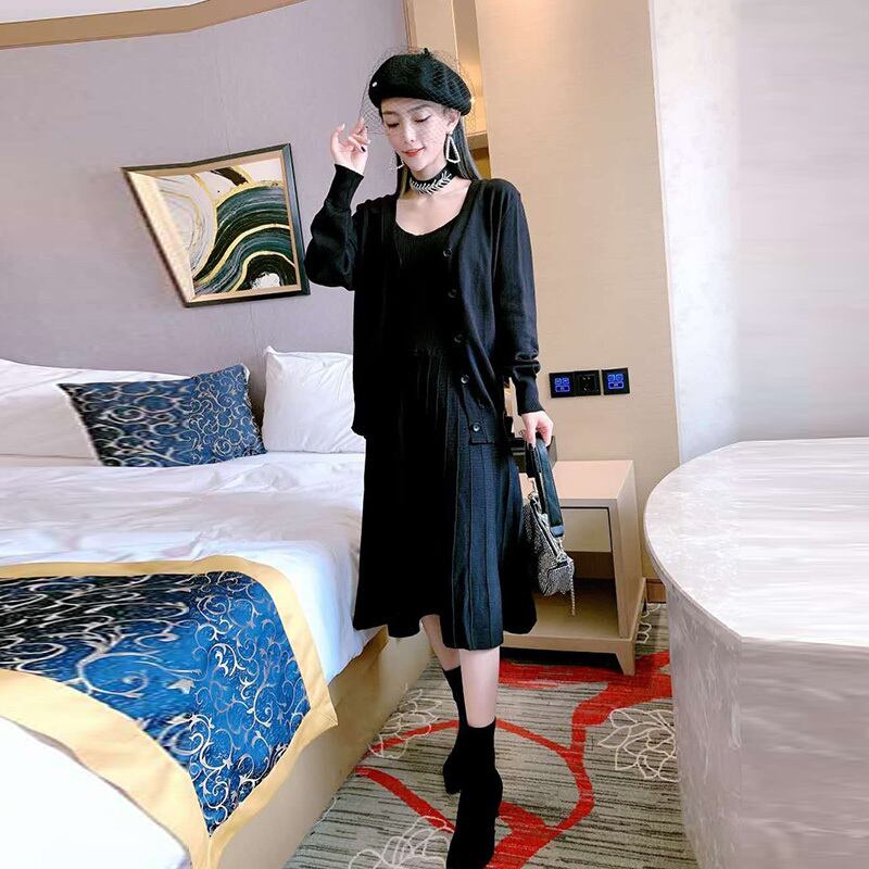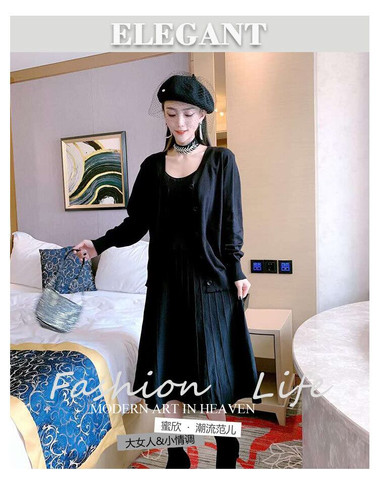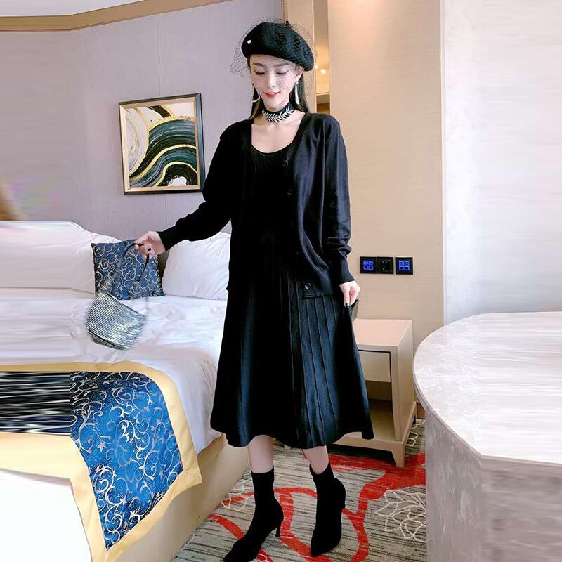 プラスサイズの女性の秋のウエスタンスタイルのニットカーディガンのセーター脂肪の妹痩身ドレスツーピースのスーツの潮 ミックスインファッション68916698999