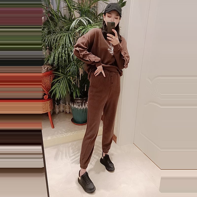 ファットプラスサイズの婦人服2020秋のウエスタンスタイルのフード付きTシャツカジュアルパンツスーツ脂肪ミリメートルの服はスリムです ミックスインファッション83704180499