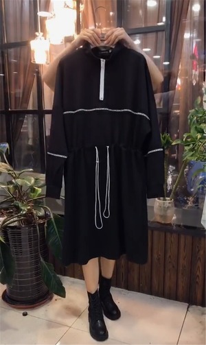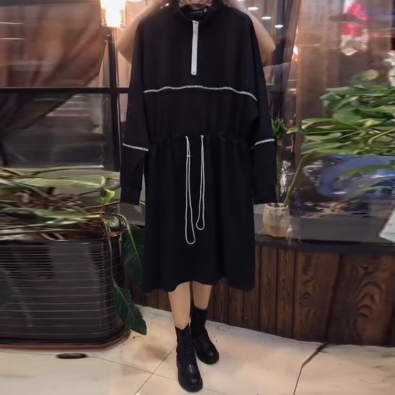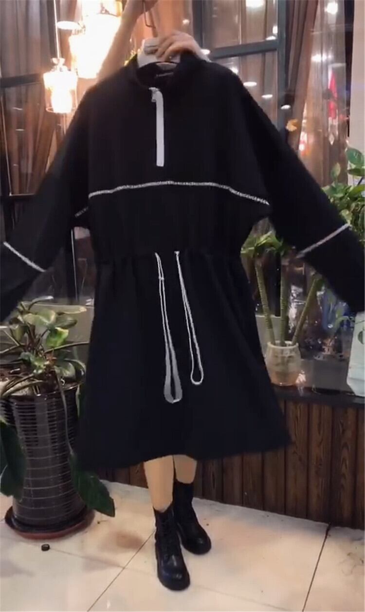 オータムロングブラックドレス 大きめサイズ 秋物 ミックスインファッション80108733274