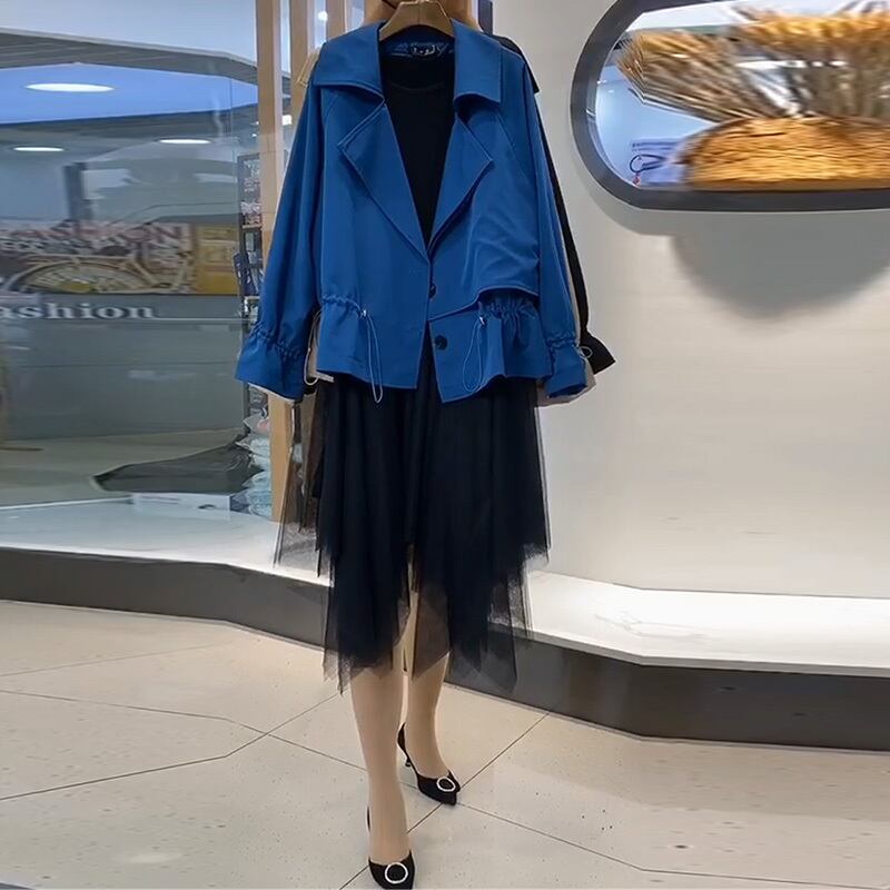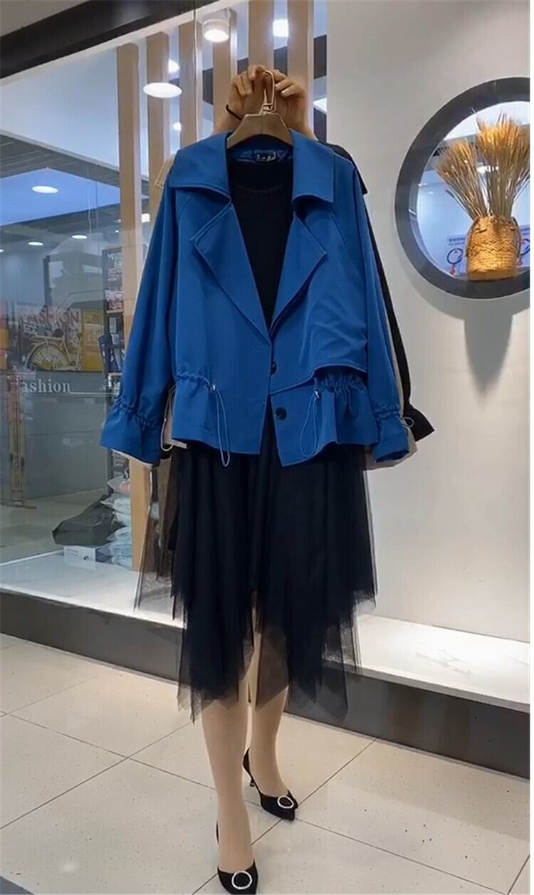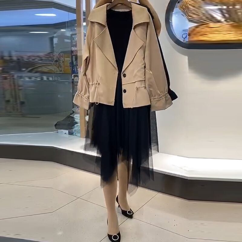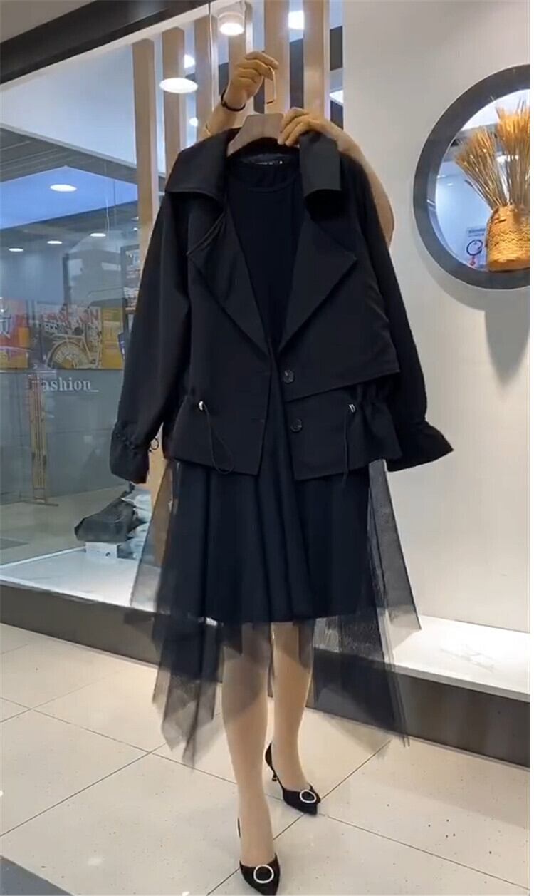 ファットシスターは薄いツーピーススーツ2020新しい秋のコートプラスサイズの女性のマイクロファットmmネットヤーンドレスです ミックスインファッション89330841554