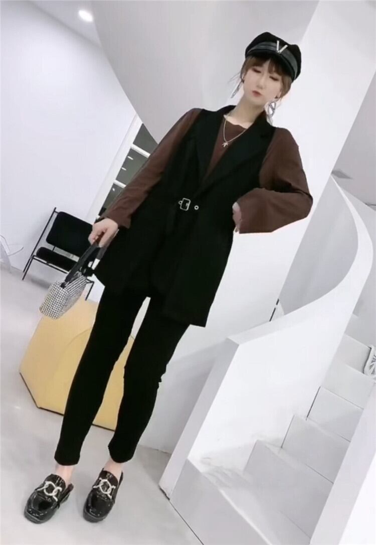 色:コーヒーカラーT,黒のベスト