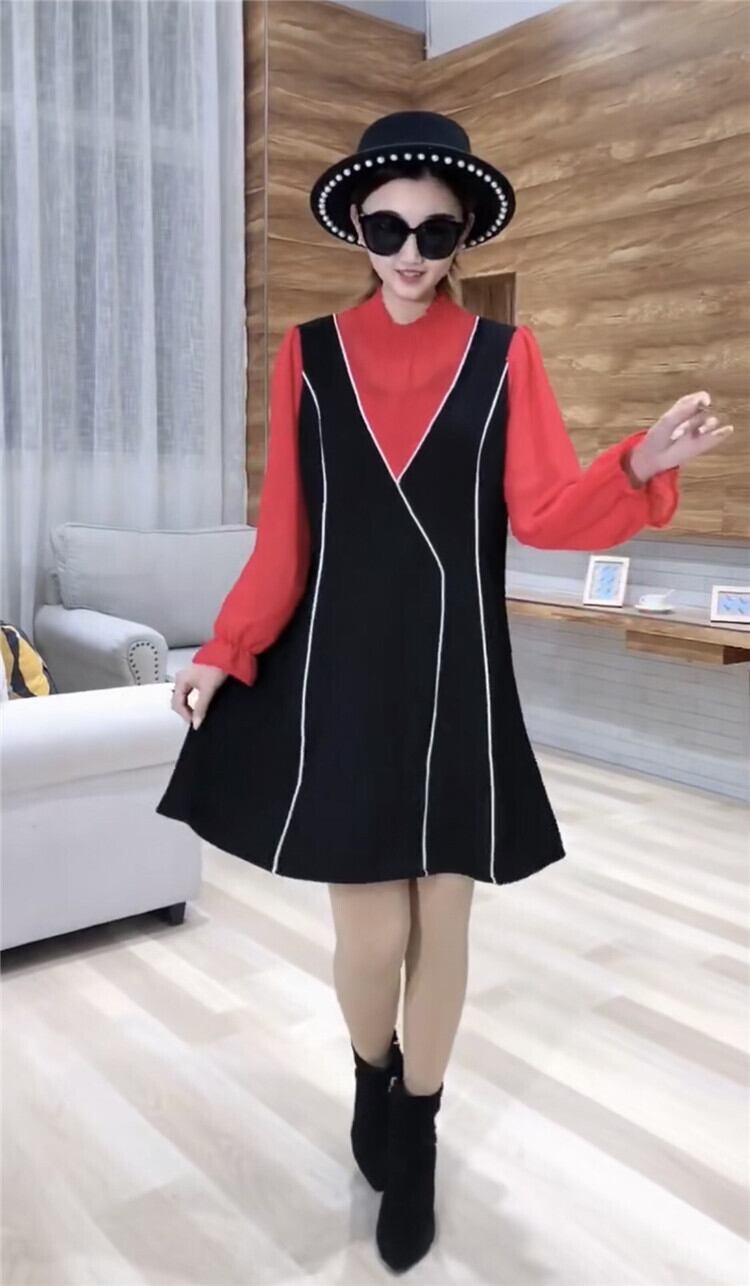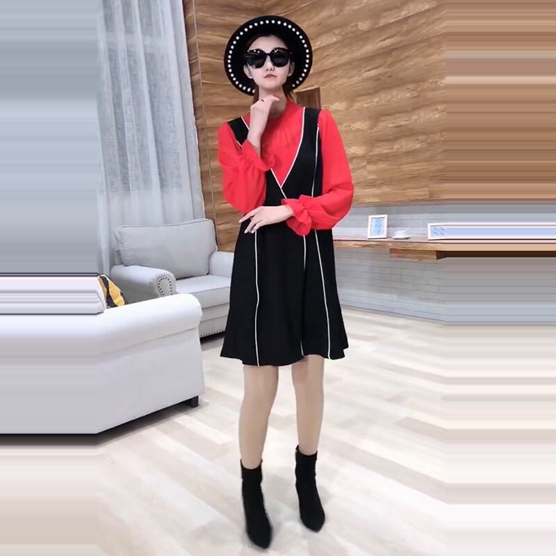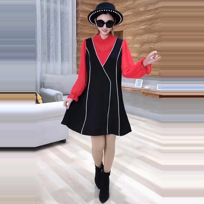 2020年秋に2つのフェイクドレス、新しいプラスサイズの婦人服、太いmm、やや太い、薄く見える、洋風、年齢トレンド ミックスインファッション1583323617