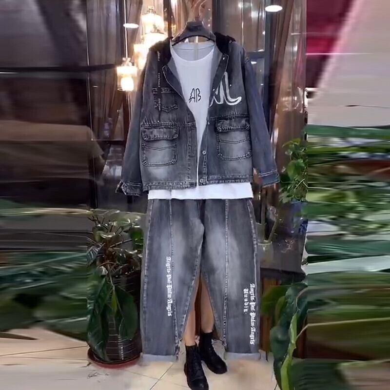 2020年秋ニューファッションウエスタンスタイルスリミングコートツーピーススーツファットmmプラスサイズレディースジーンズ ミックスインファッション31286015664