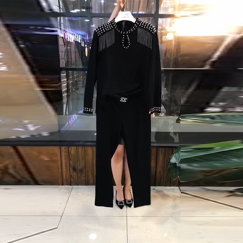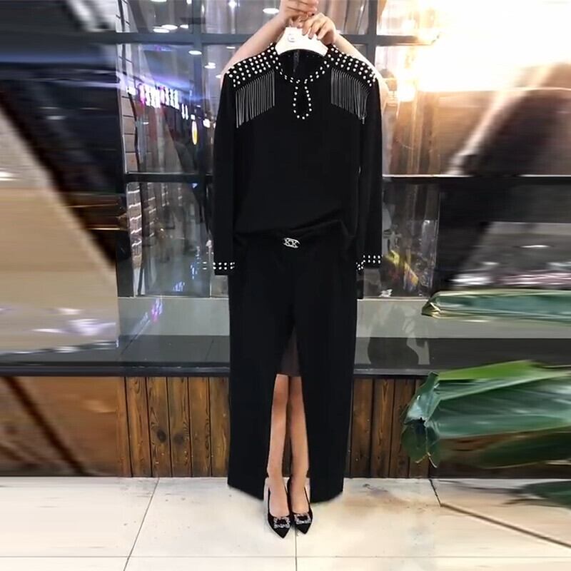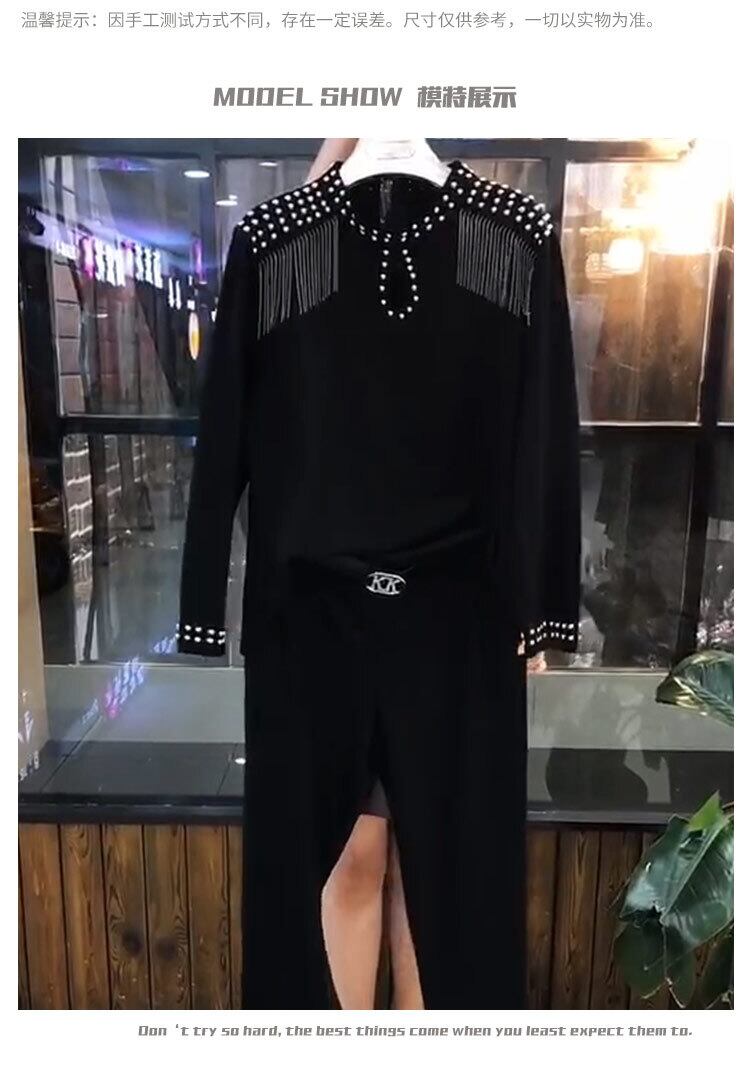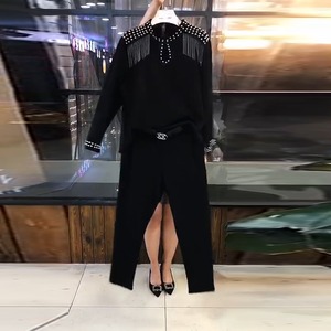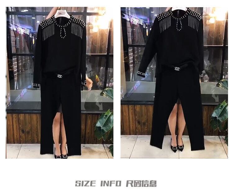 2020年秋新しいビッグサイズのリベットレディースツーピーススーツは背が高くて薄い、ウエスタンスタイルのスートップスーツレディースパンツファッション ミックスインファッション17928367464