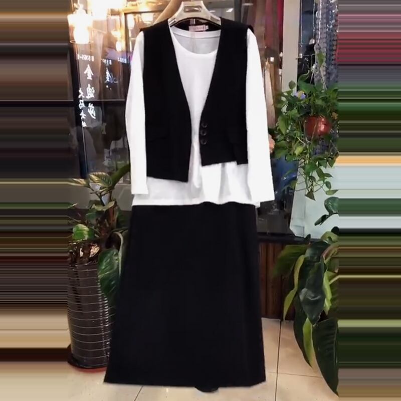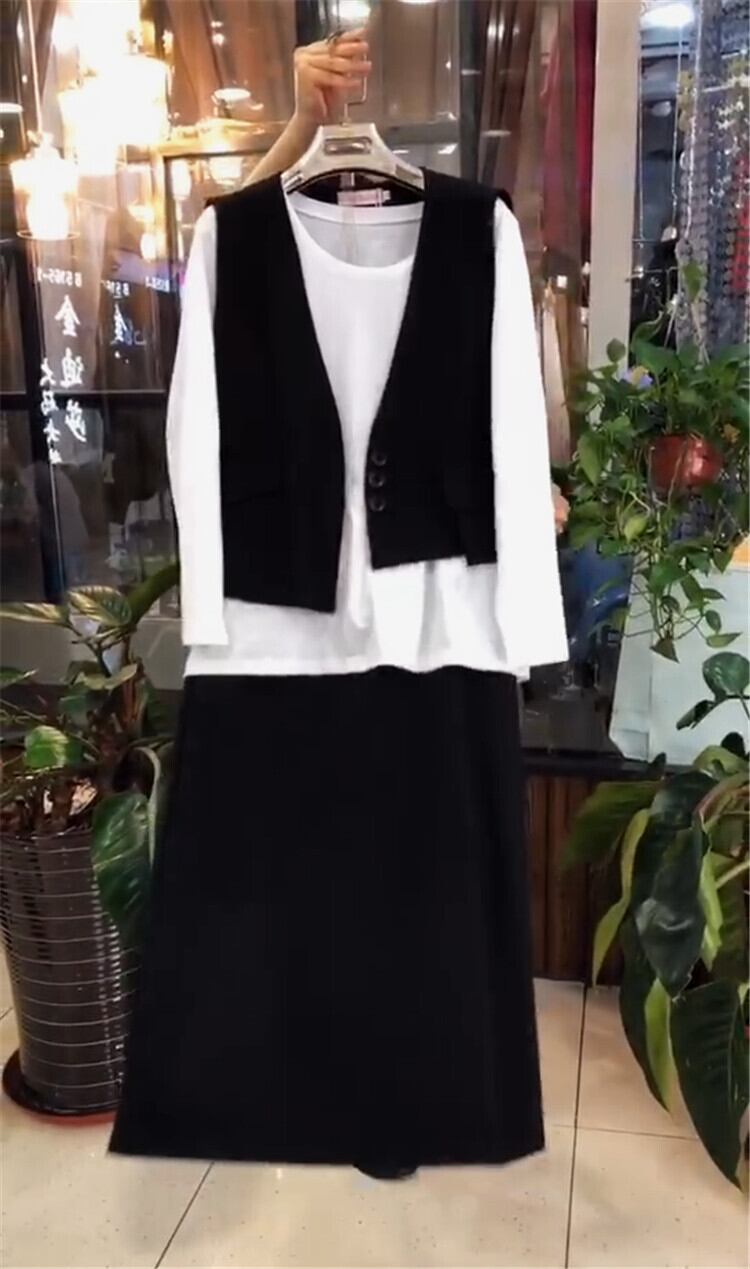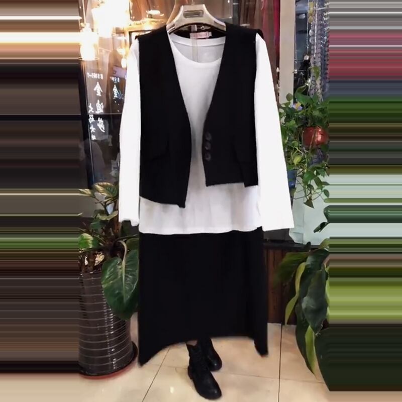 ファットシスタースリムスーツレディース2020新しい秋のチョッキプラスサイズ縮小スカートスリーピースウエスタンスタイル ミックスインファッション92485202727