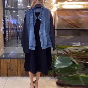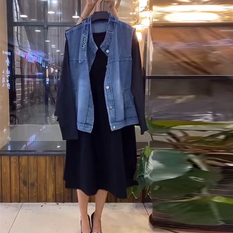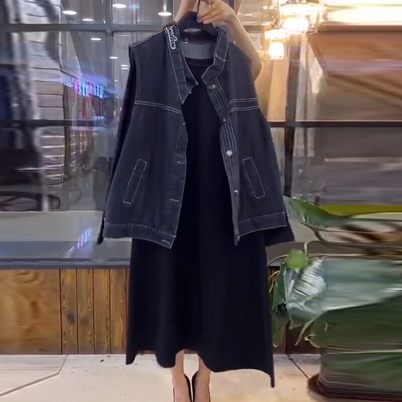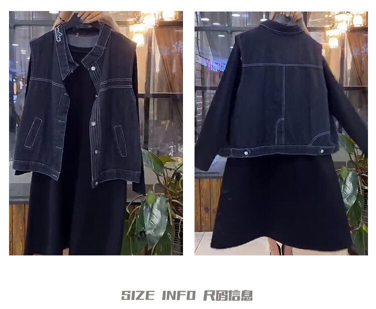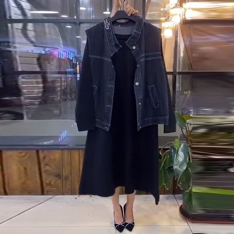 プラスサイズレディースデニムベストドレスツーピースセット2020秋ファットシスターmmウエスタンスタイルスリミングスーツ ミックスインファッション67810997602