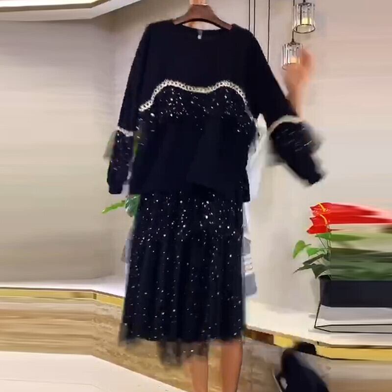 ラージサイズファットシスタースリミングスーツスカート年齢削減スキームデザインセンスのミドル丈ベストTシャツハーフスカートツーピーススーツ ミックスインファッション66785529629