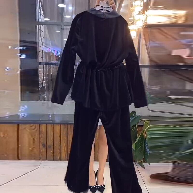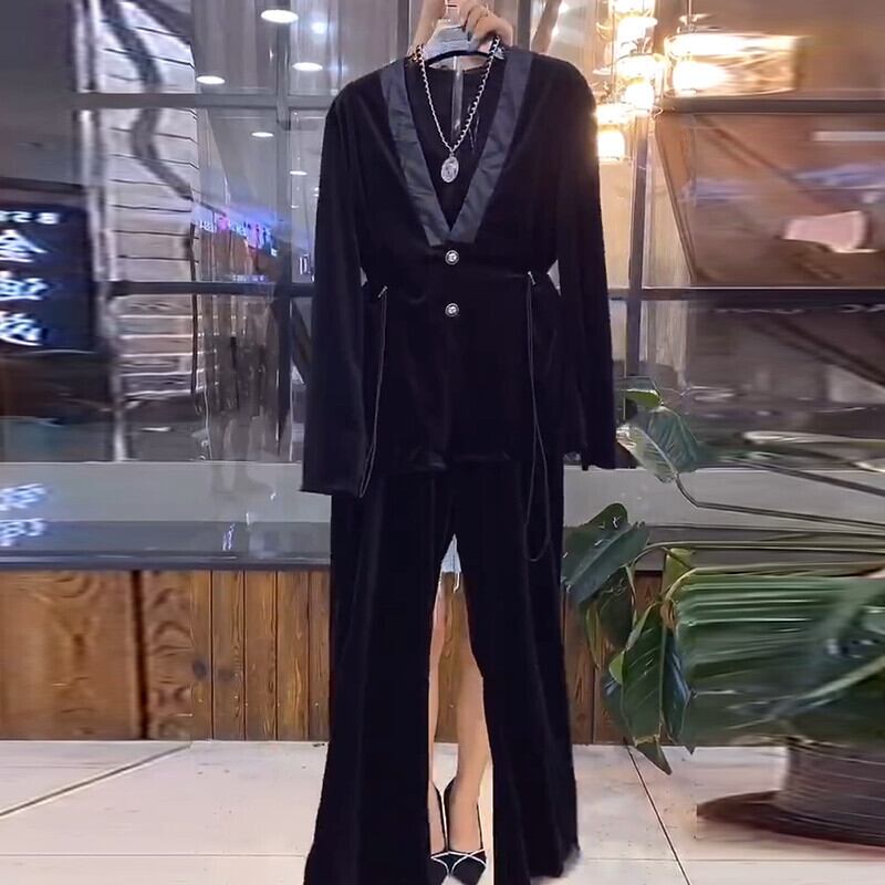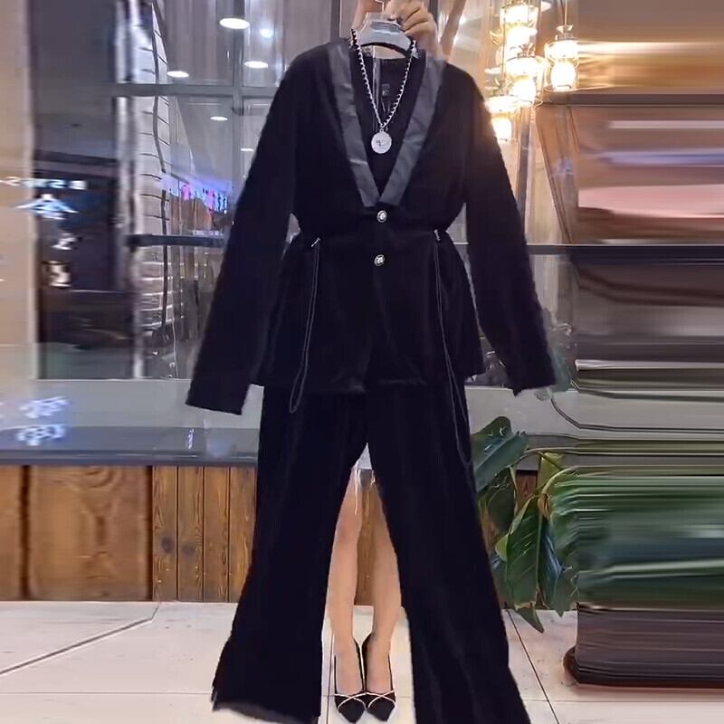 ベルベットスーツレディース2020年秋ニューファットシスタープラスサイズレディースmmファッション気質ワイドレッグパンツスリーピーストレンド ミックスインファッション49201359373
