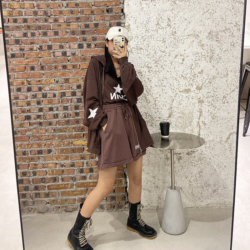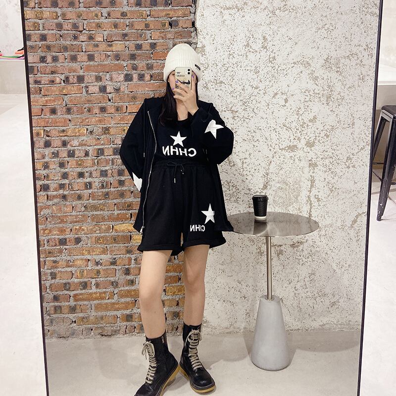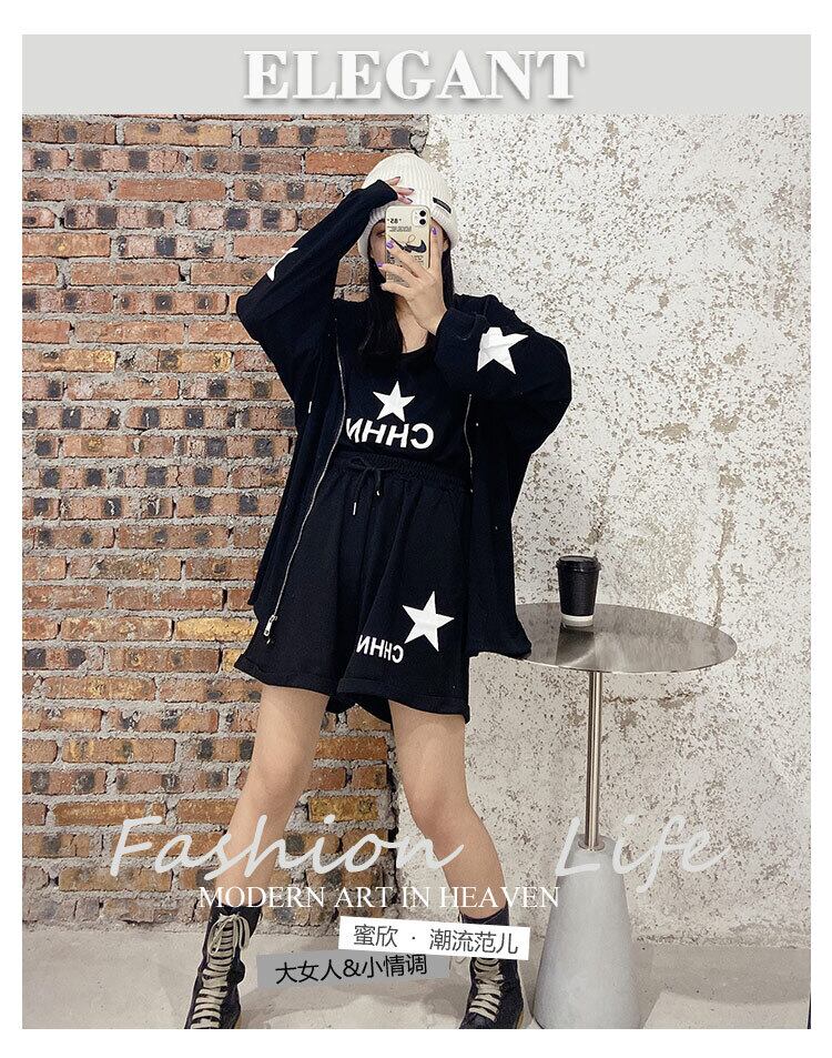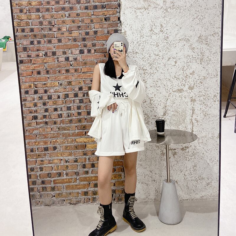 2020年の新しいウエスタンスタイルの薄いスリーピーススーツファットmm秋のベストフード付きジャケットショーツプラスサイズの婦人服のトレンド ミックスインファッション36709384714