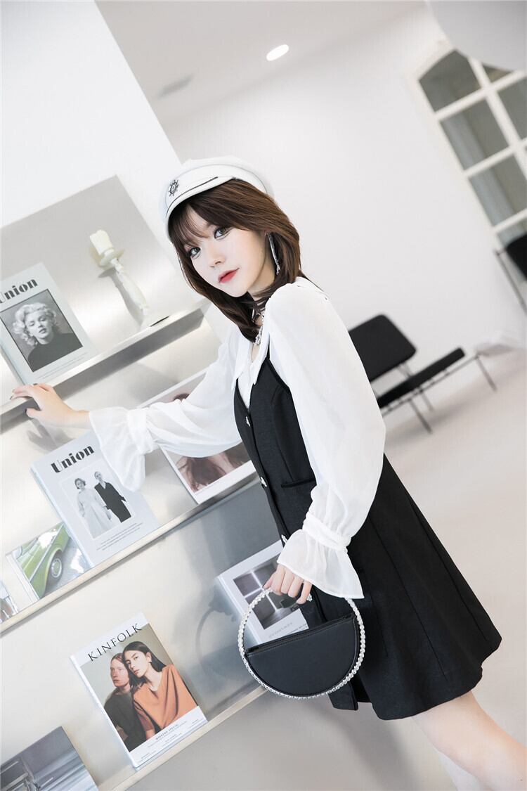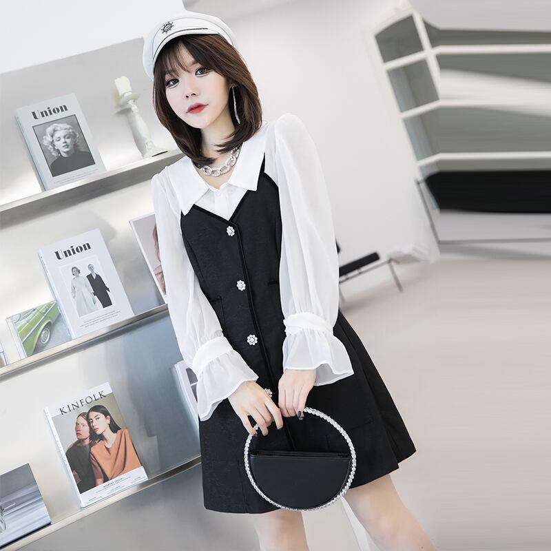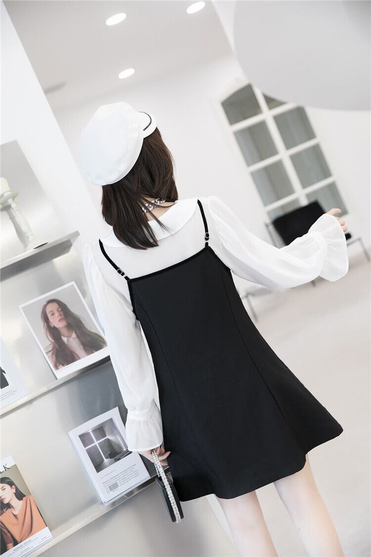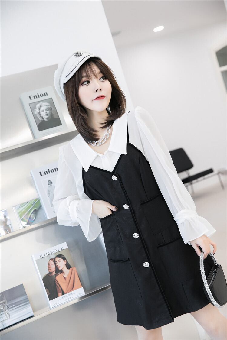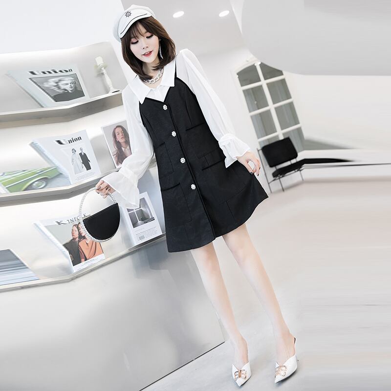 プラスサイズの女性の秋の太った姉妹ルーズスリムスカートウエスタンスタイルのツーピースシャツサスペンダードレストレンディ ミックスインファッション12428570867