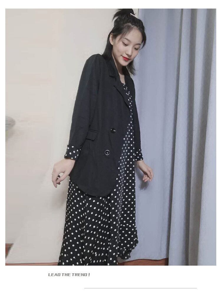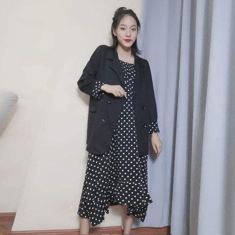 2020年秋新作ラージサイズレディースラペルスーツジャケットファットシスターmmドットドレスツーピーススーツ ミックスインファッション64180661385