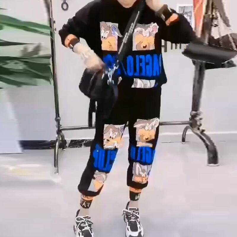 ファットシスタースリムスーツプラスサイズ婦人服2020秋新作ファッション年齢削減カバー肉漫画ツーピースパンツ ミックスインファッション35437673677