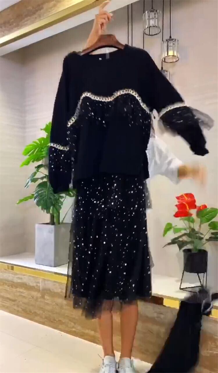 オータムスカート Tシャツ スタイル薄手 大きめサイズ 秋物 ミックスインファッション91756723457