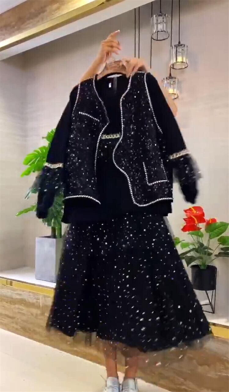 色:黒のベスト,ブラックT,黒のスカート黒のスカート,スカートスーツトップス+スカート