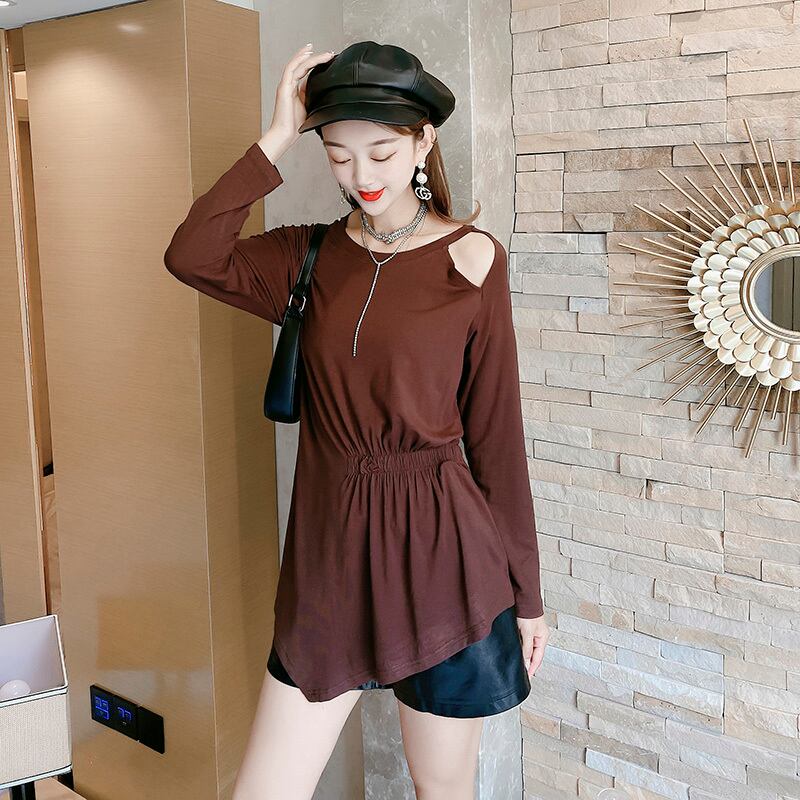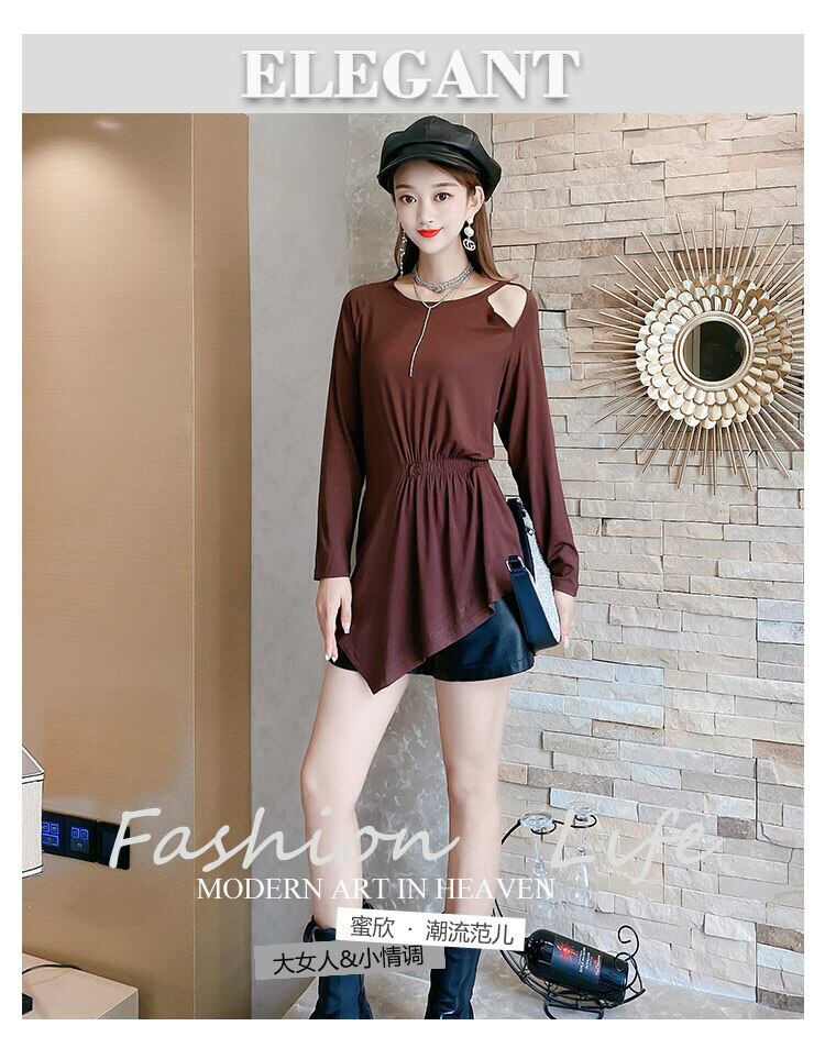 2020年の新しいプラスサイズの女性の秋の服のeignスタイルの長袖Tシャツ太った姉妹ルーズで薄いトップボトミングシャツ ミックスインファッション20826803097