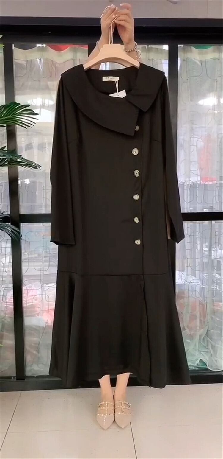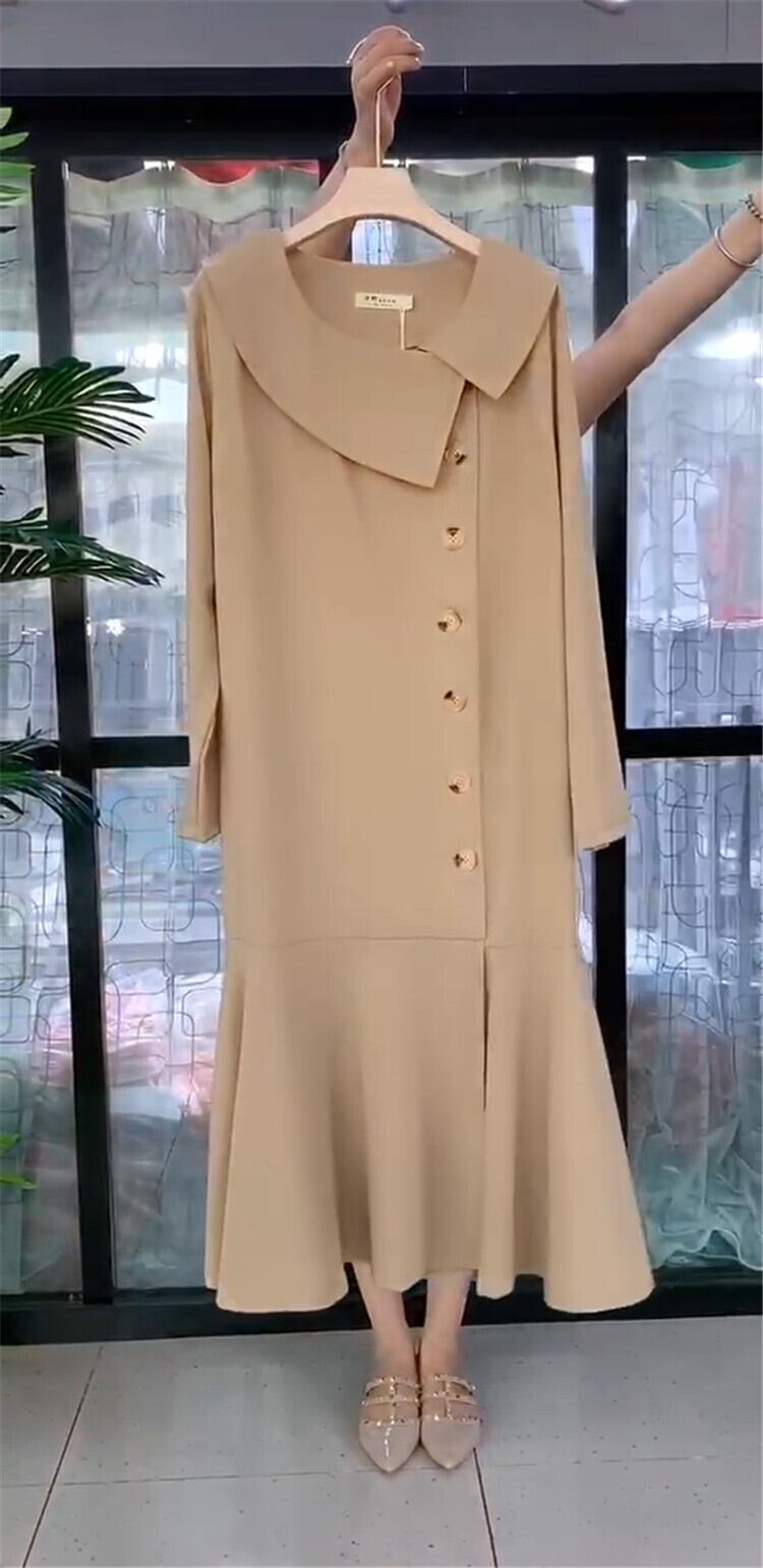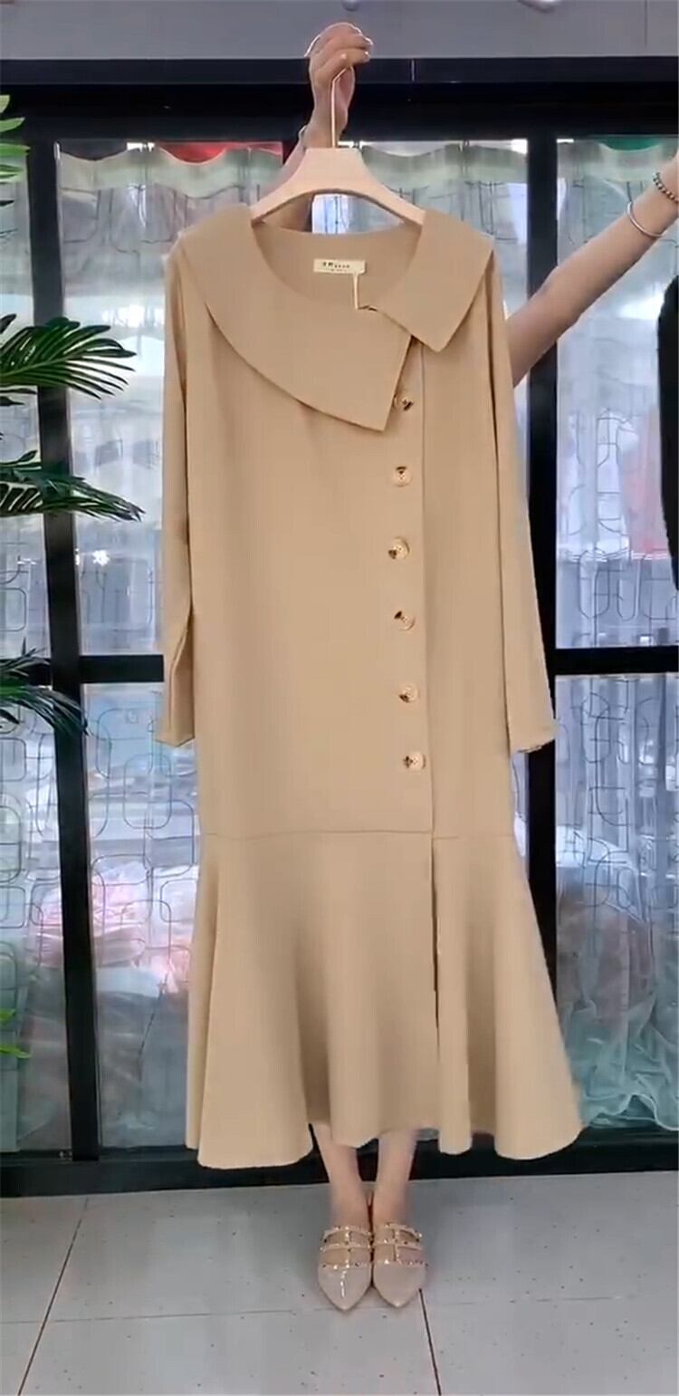 大きいサイズのフレンチウエストヘップバーンスタイルのラペルドレス女性の秋は薄く、塩は甘くすることができます、レトロな肉カバーのロングスカート ミックスインファッション42016969371