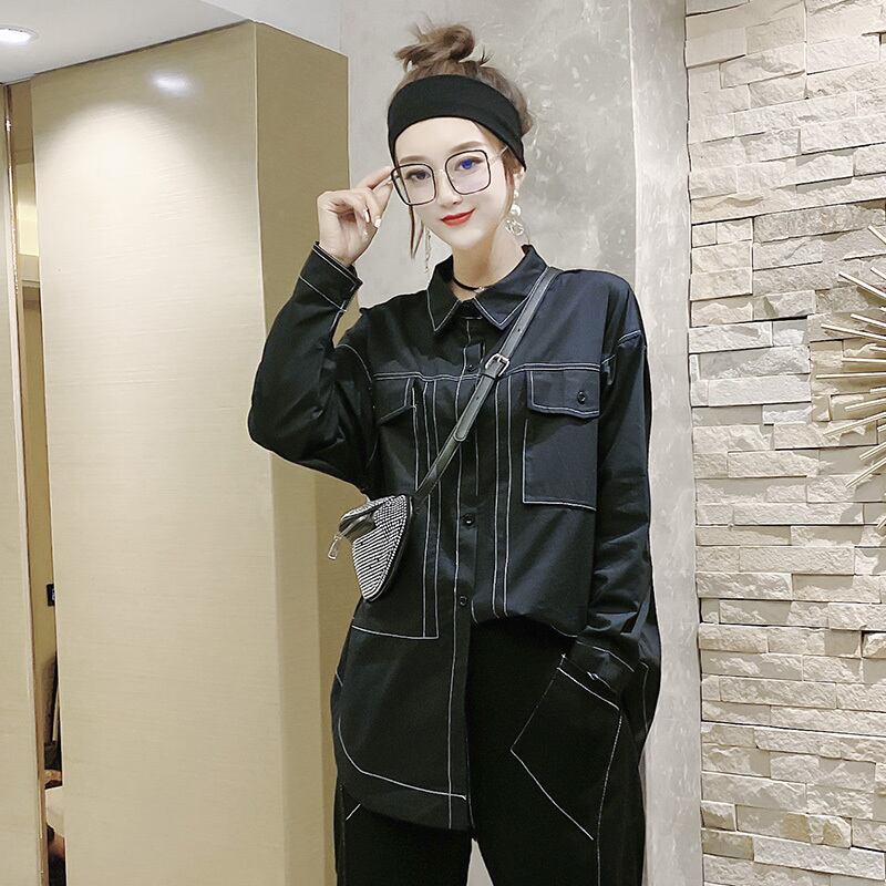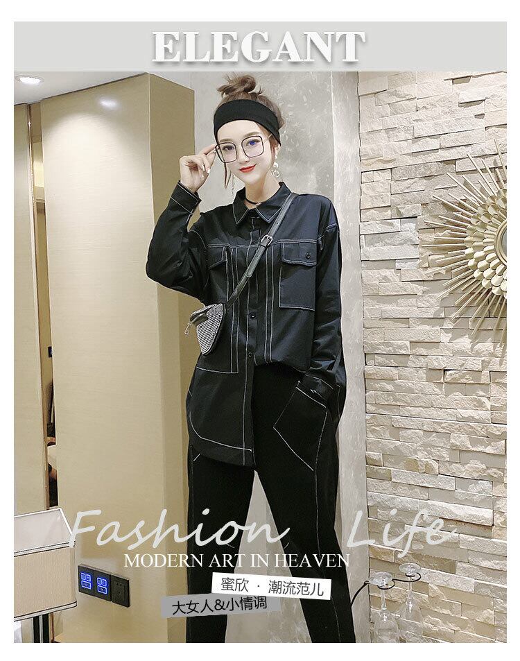 ファットシスターファッション気質ポロカラーシャツスカート秋プラスサイズレディースマイクロファットmmカバーベリーデニムジャケットタイド ミックスインファッション57062799382
