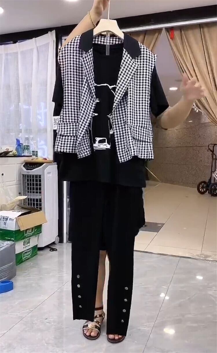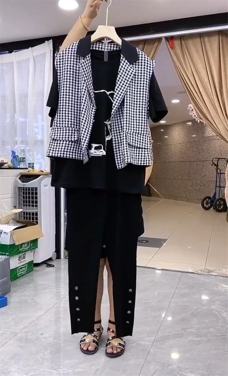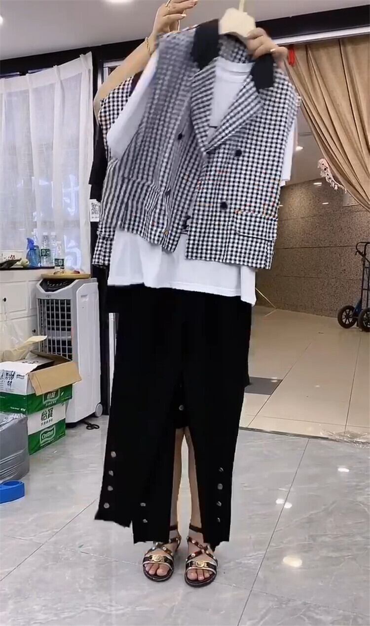 色:ブラックTチェックベスト,ホワイトTチェックベスト,黒いズボン