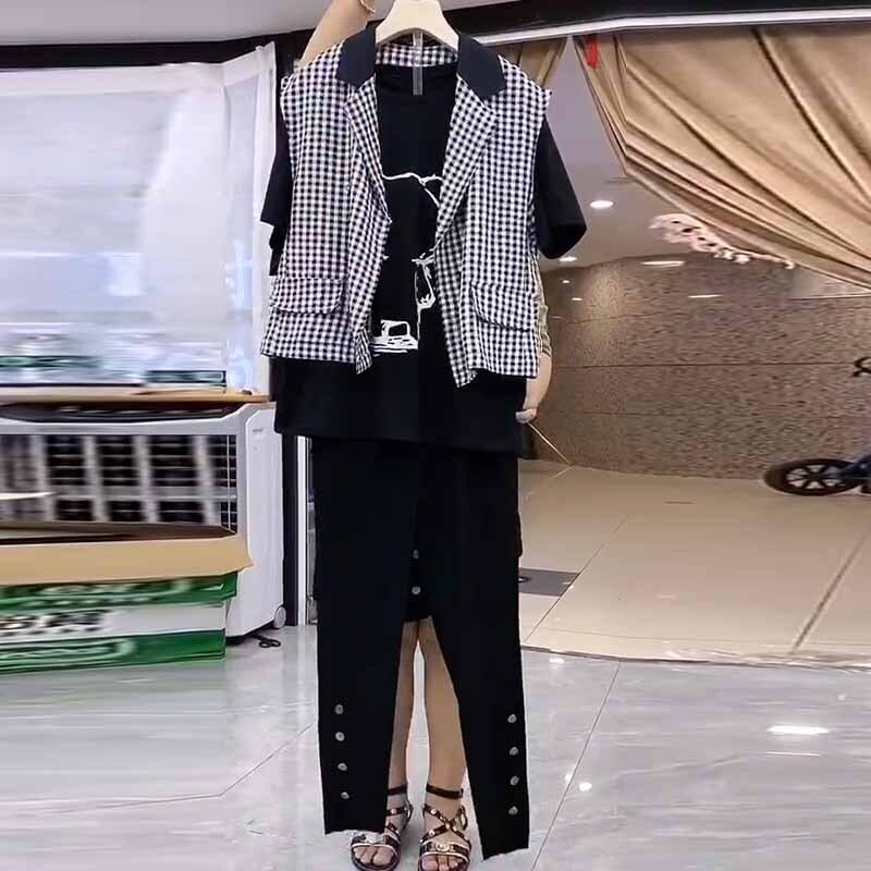 2020年秋にプラスサイズのレディースウェア新しいファットシスターmmウエスタンスタイルのレディースパンツとチョッキは薄いツーピーススーツです ミックスインファッション39497921773