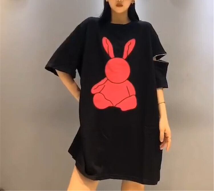 プラスサイズの婦人服2020新しいファットmmウエスタンスタイル年齢を減らすTシャツ漫画半袖ドレス袖穴黒ドレス ミックスインファッション64981752881