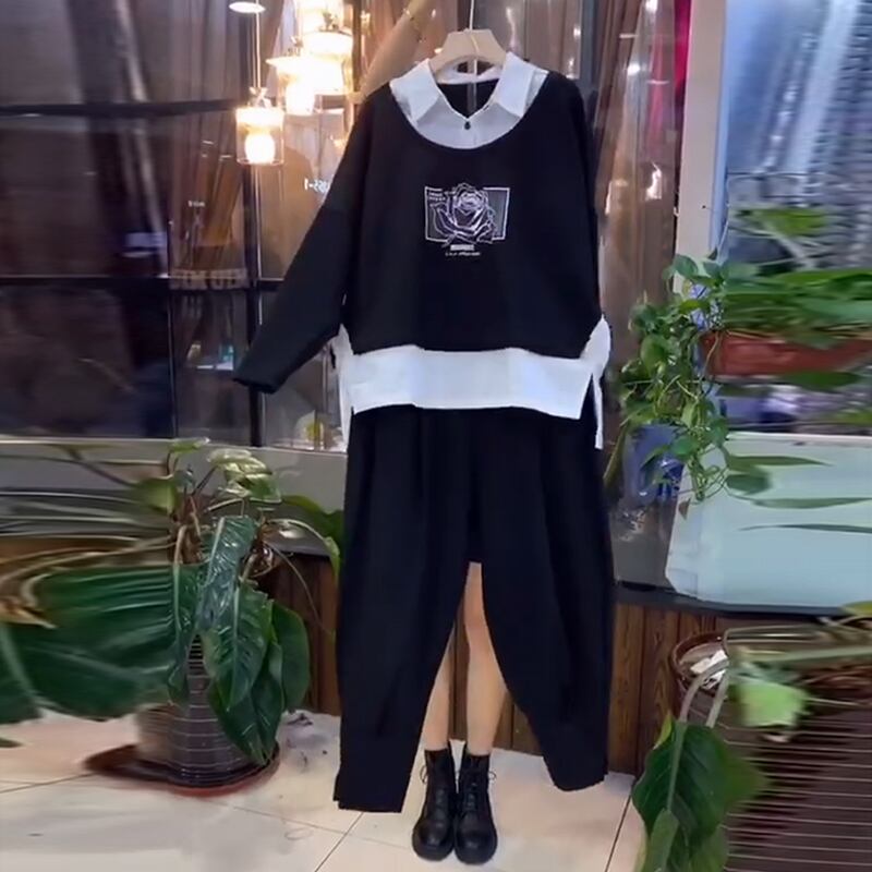 ファットmmプラスファットプラスサイズの婦人服2020新しいルーズで薄い長袖シャツパンツカジュアルウエスタンスタイルのスーツ ミックスインファッション60007077746
