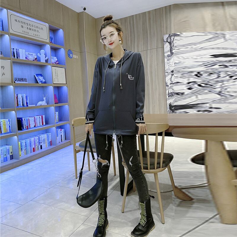2020年初秋新しいプラスサイズの女性のフード付きセーターブラウス脂肪mmカバー腹痩身カーディガン大 ミックスインファッション88629974511