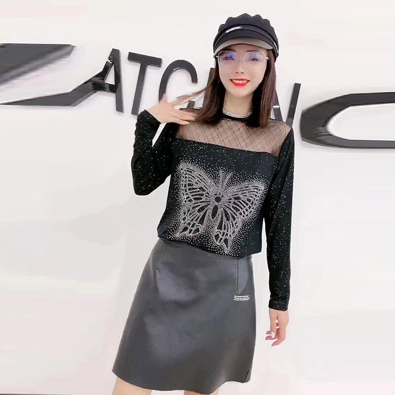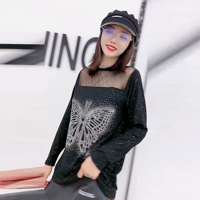 ファットmmスリミングプラスサイズレディースメッシュブライトダイヤモンドボトミングシャツ2020新しいトップTシャツ年齢削減秋冬潮 ミックスインファッション64950211806