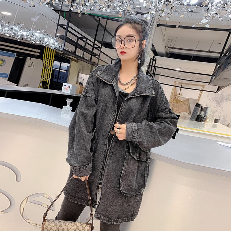 2020年春秋服新プラスサイズレディースファットmmカバー腹スリミングカジュアルタイド200kgデニムジャケットトップ ミックスインファッション94974518219