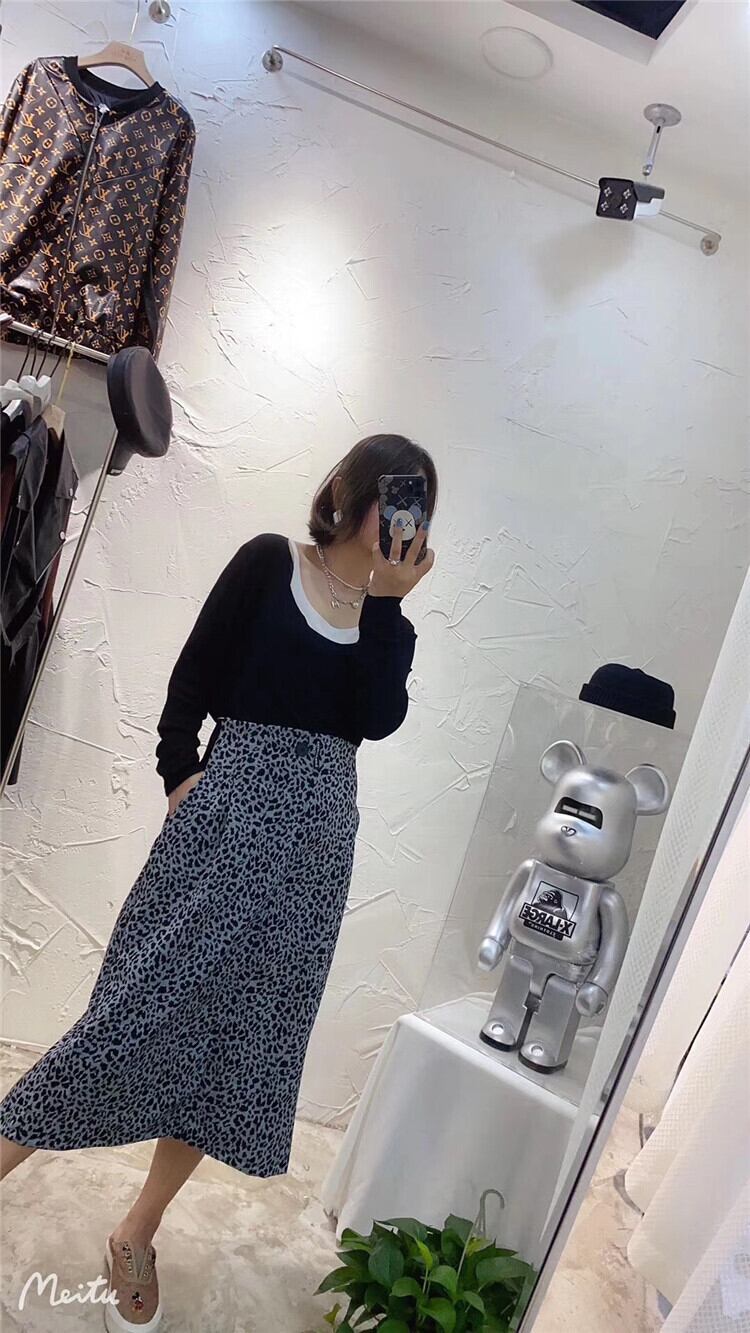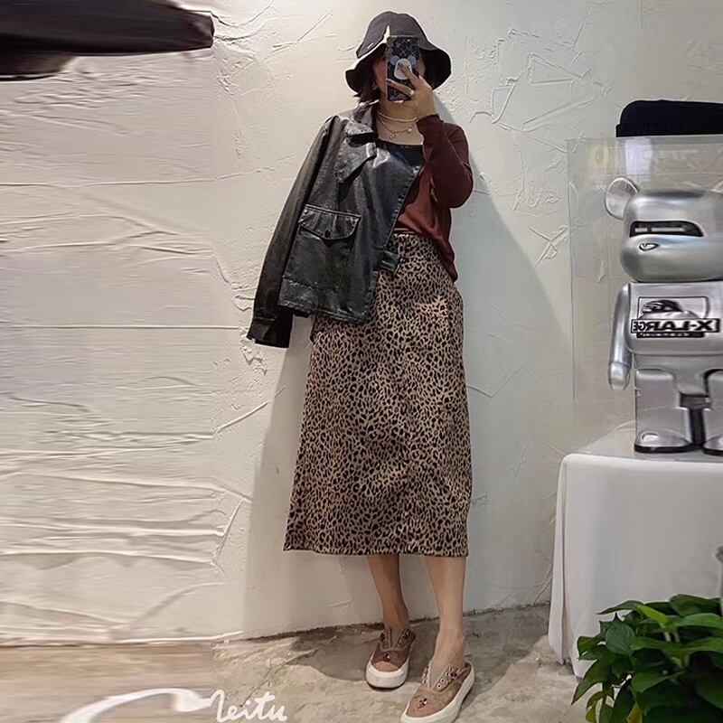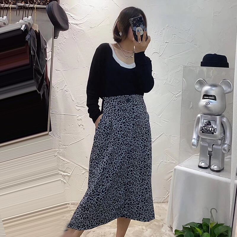 Tシャツ ルーズトップス レオパードプリント柄スカート ロング 大きめサイズ ミックスインファッション31710658226
