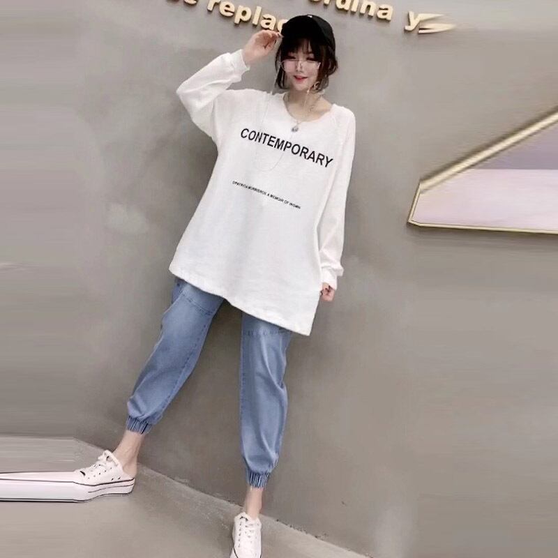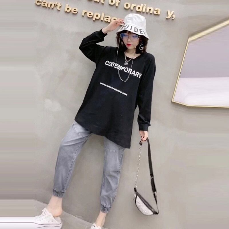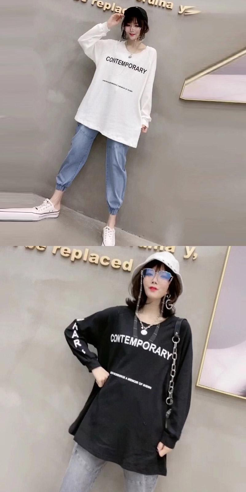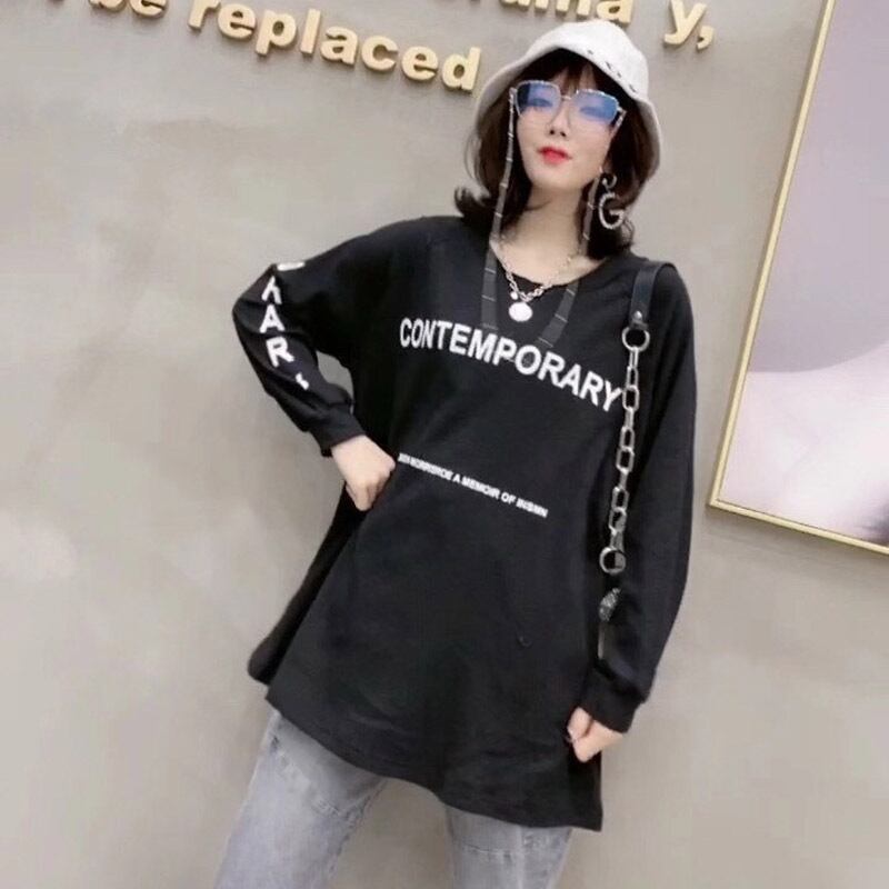 ファットmmプラスファットプラスサイズ長袖Tシャツ女性の秋の服はルーズで、薄くて太いトップジーンズの肉を覆っています ミックスインファッション50112772639