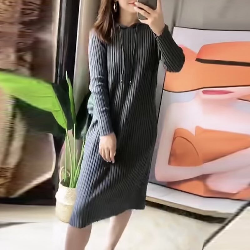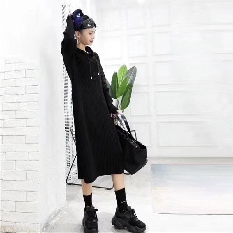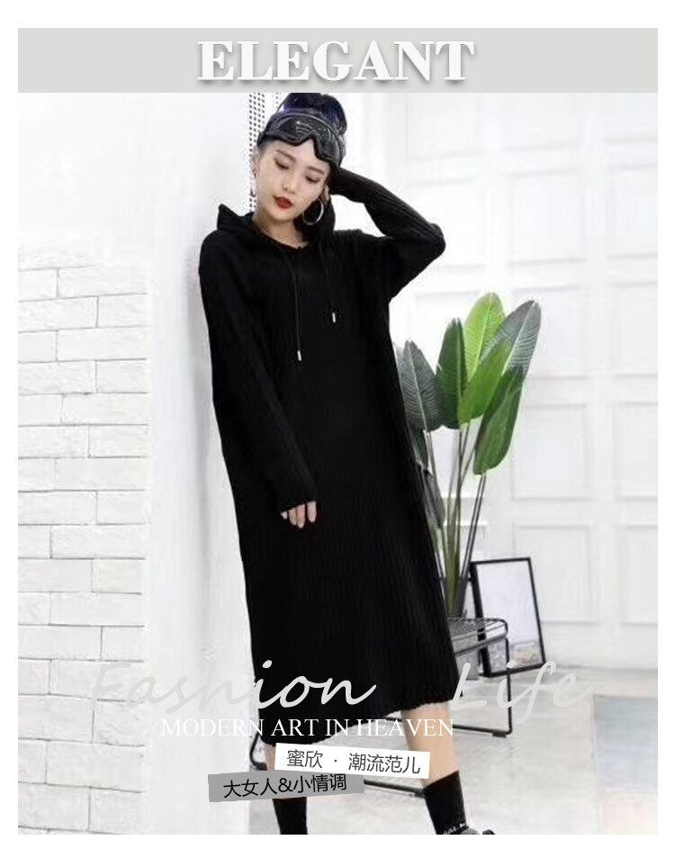 2020年秋新しいスタイルプラスサイズ秋の脂肪mmフード付き薄い気質カバーベリーライト成熟したニットドレス婦人服 ミックスインファッション31655324302