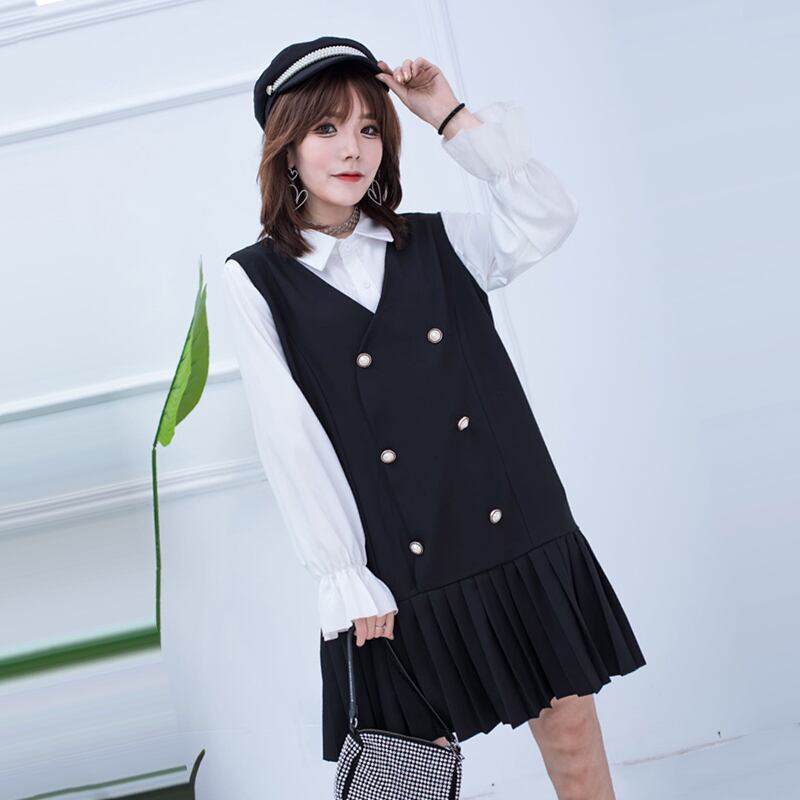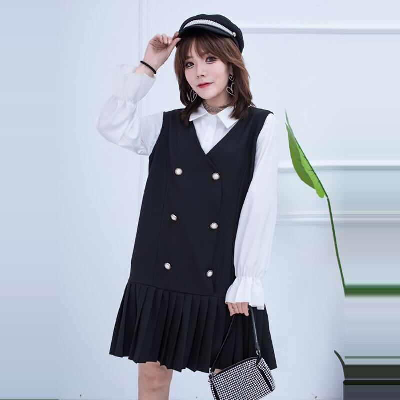 太った妹は薄いツーピースのスーツ、ウエスタンスタイル、200 kgの年齢削減シャツ、ツーピースのプリーツスカート、プラスサイズの婦人服のトレンドでした ミックスインファッション40967028116