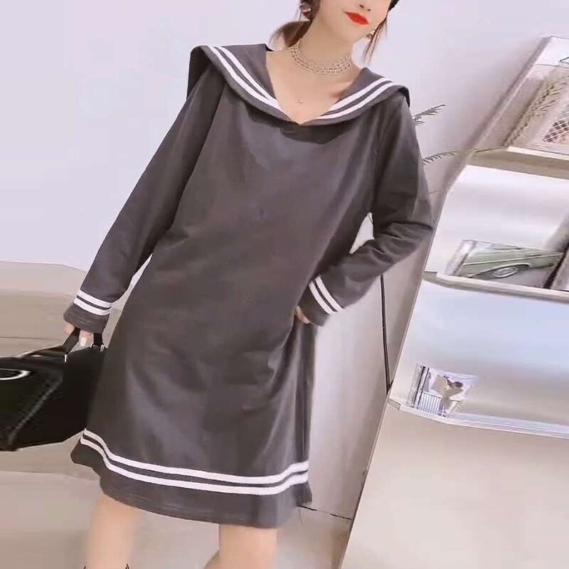 2020年初秋初秋新作ラージサイズレディースネイビーカラードレスファットmm薄春・秋・冬大潮 ミックスインファッション79782586541
