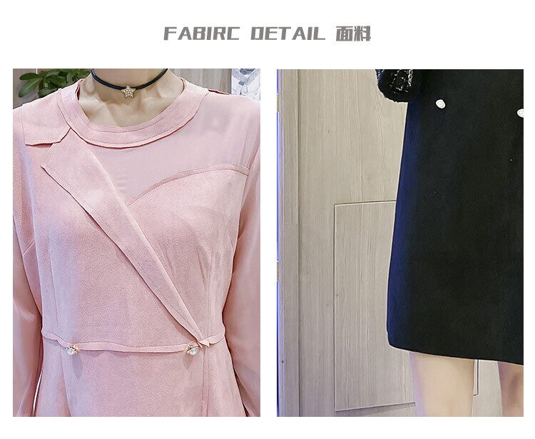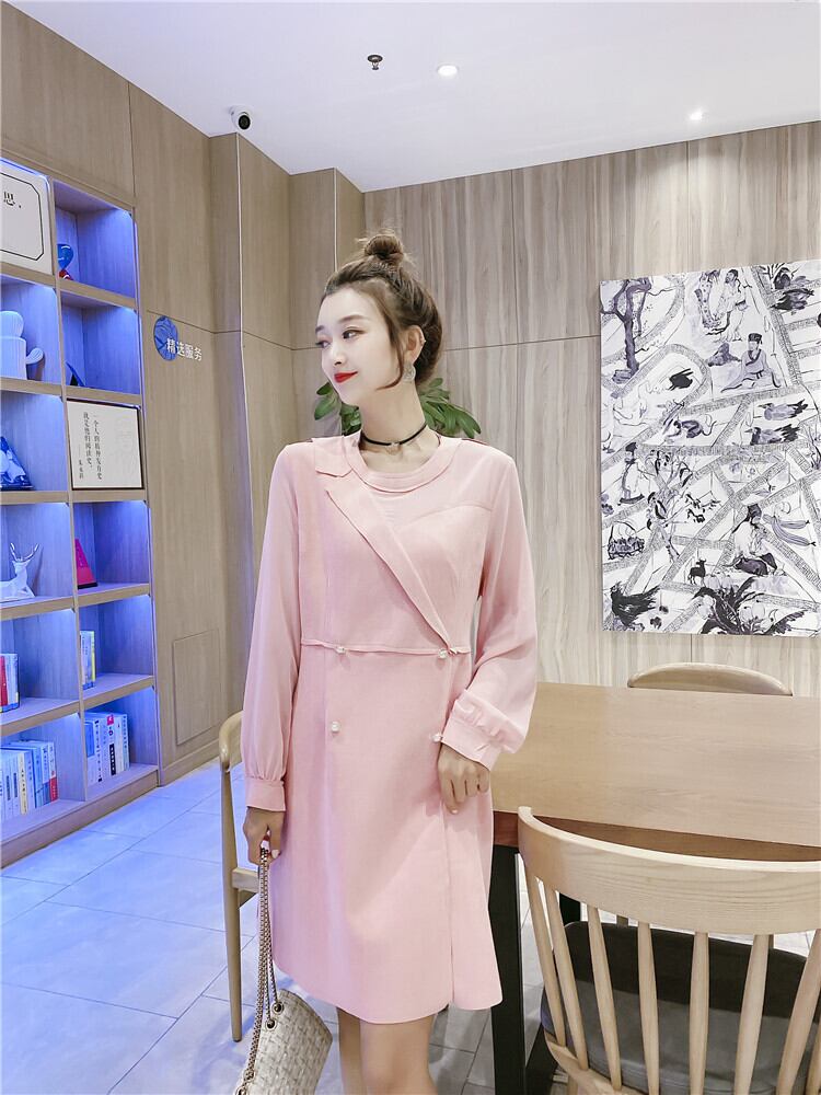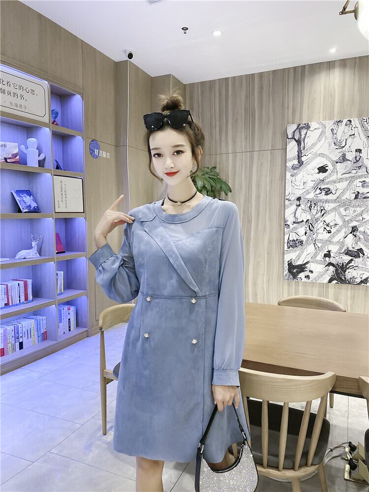 ファットmm2020年秋新しい秋の服は薄く見え、年齢を減らす偽のツーピースメッシュスリーブドレスプラスサイズの婦人服 ミックスインファッション12372861103