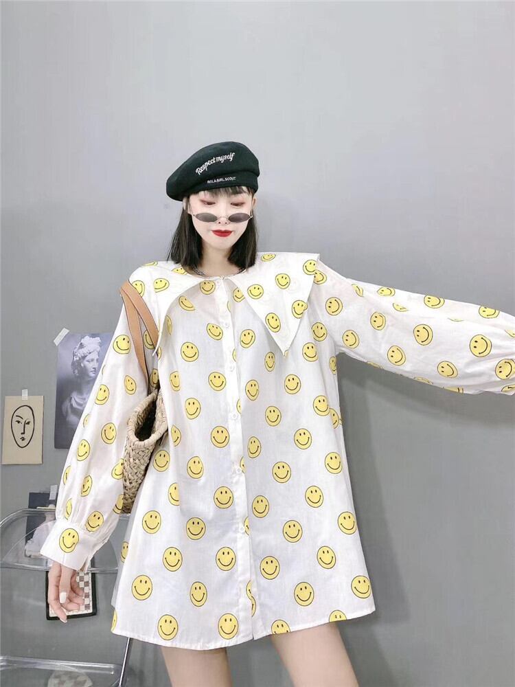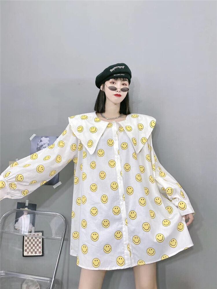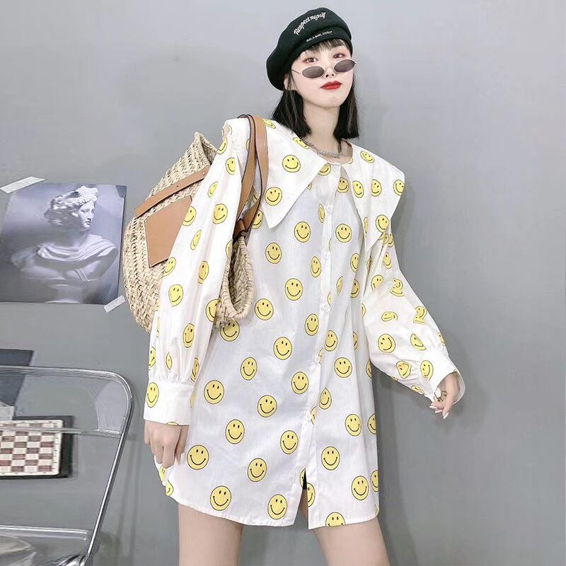 ファットmmプラスファットエクストララージサイズ230kgルーススマイリーシャツ香港スタイルのロングセクションスリム長袖シャツの女性バージョン ミックスインファッション21218037878