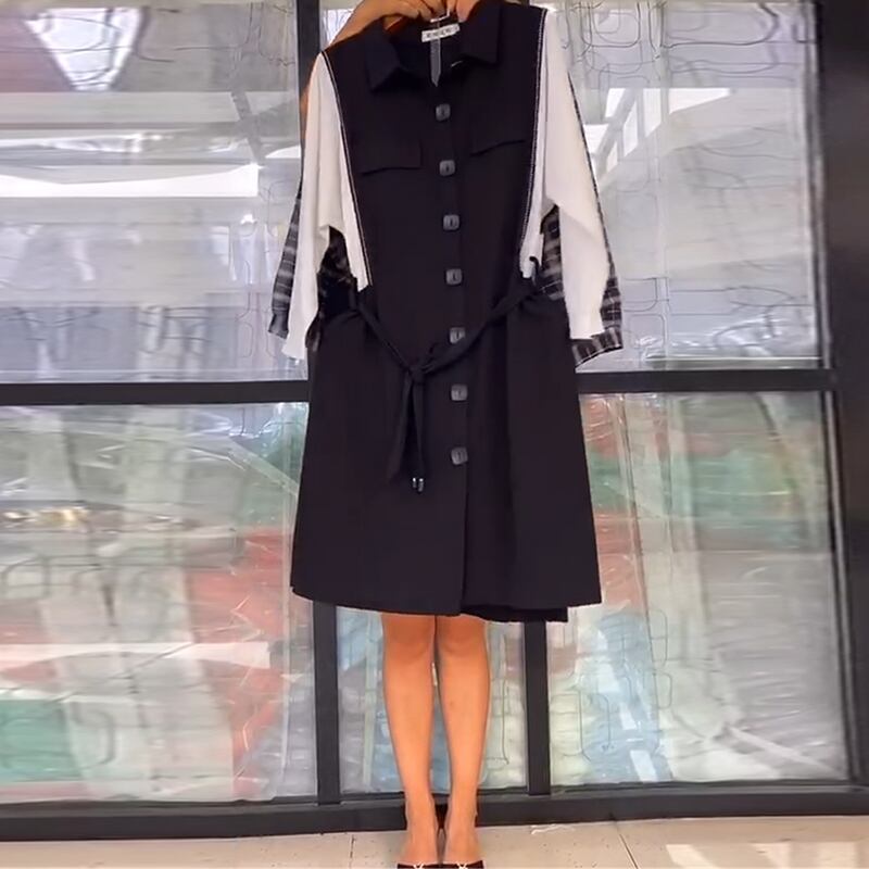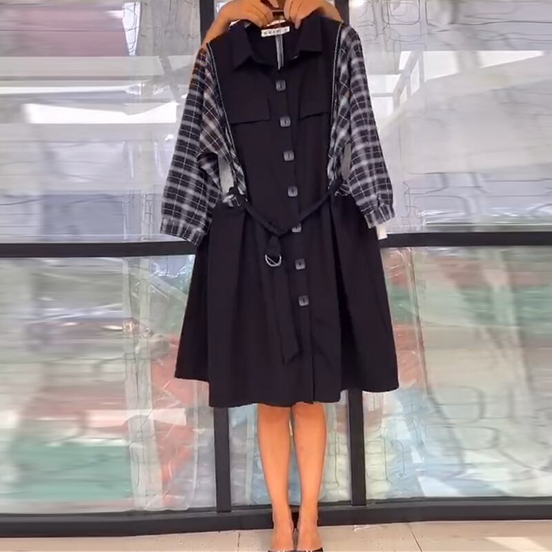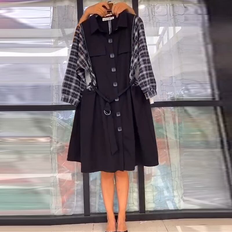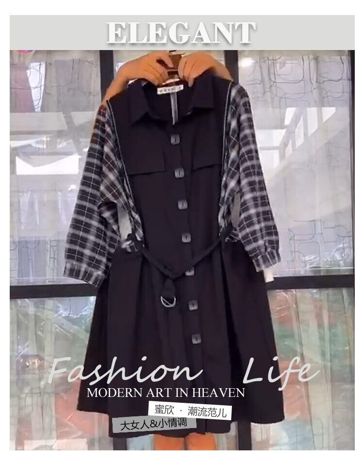2020年秋新しいプラスサイズの女性の脂肪mm年齢削減痩身軽い成熟したベルトドレスステッチ秋 ミックスインファッション37451466810