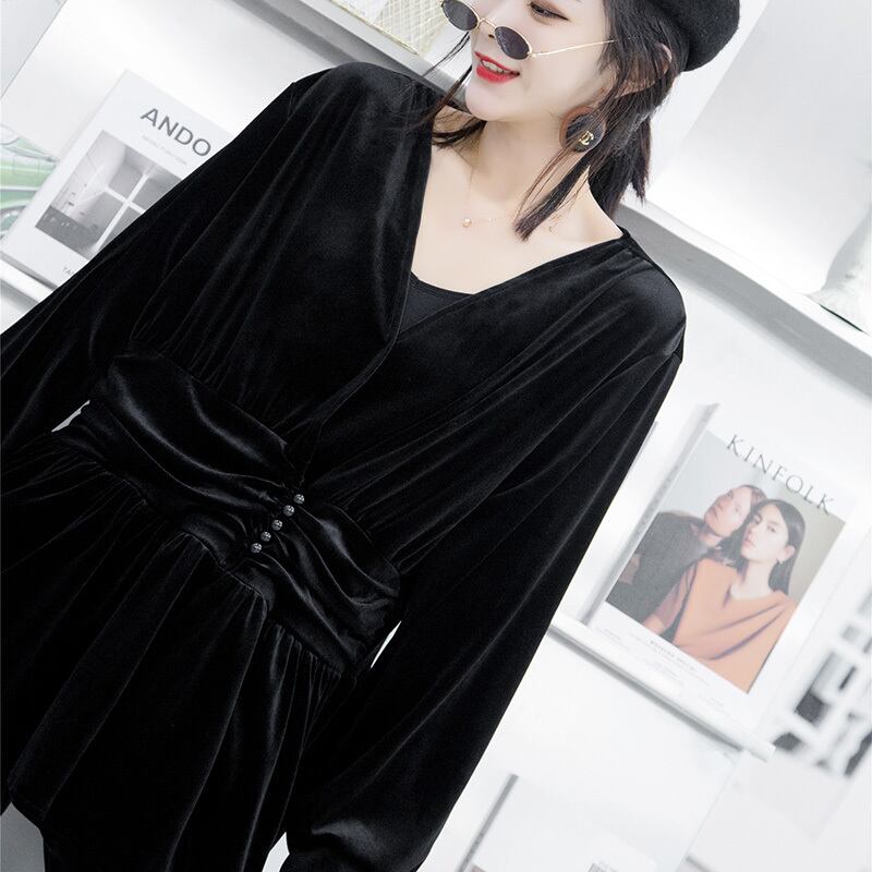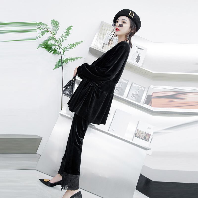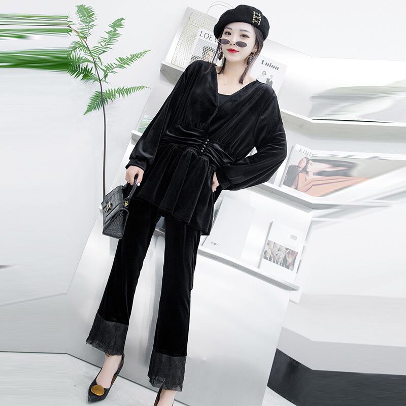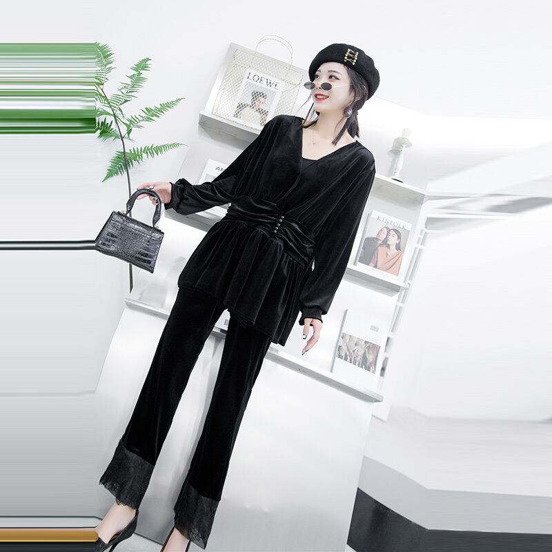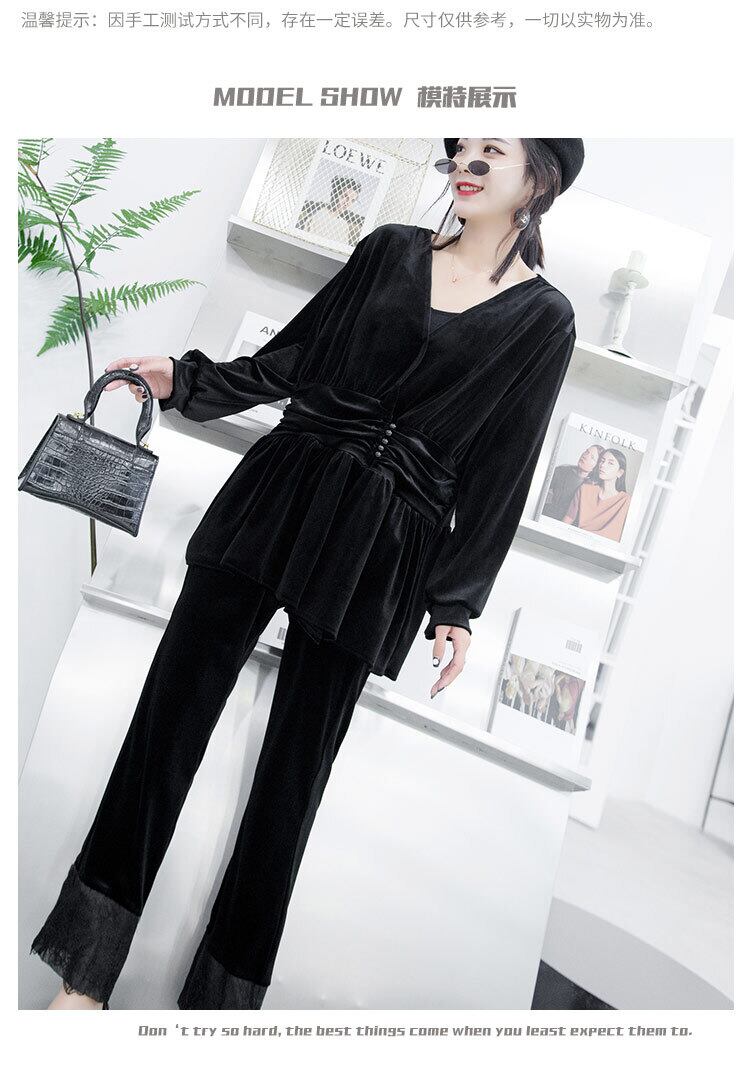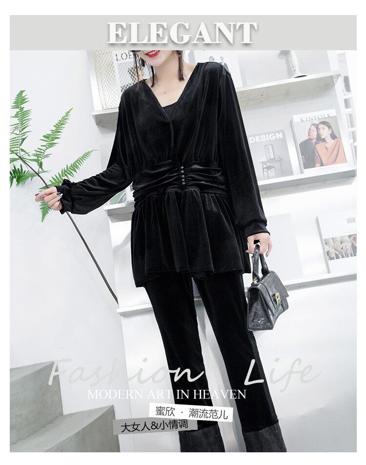 2020年新作ファットmm秋服ラージサイズスリミングベリートップルーズファット長袖Tシャツワイドレッグパンツ ミックスインファッション27926049763
