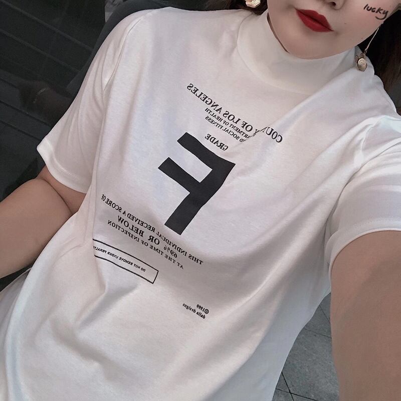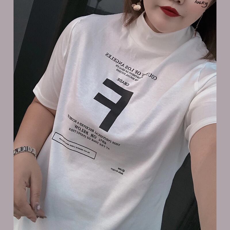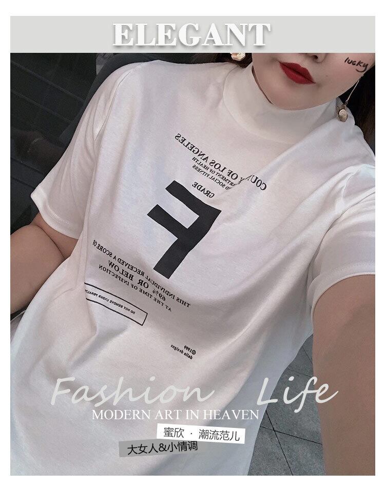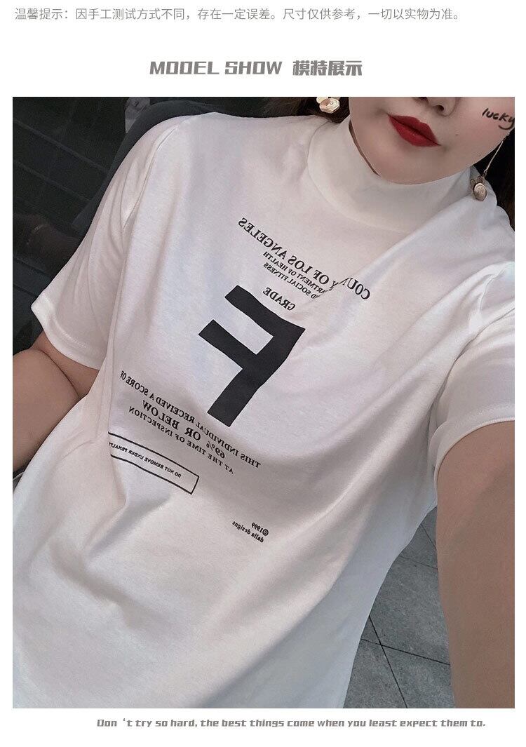 大きいサイズでやや太めのハイネックボトミングシャツ、女性の太いmmカーディガン半袖Tシャツショートトップ、秋は薄め ミックスインファッション79100138390