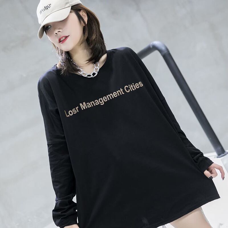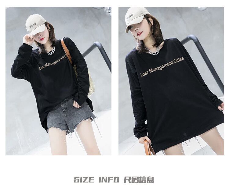 プラス脂肪プラスサイズの女性のオールマッチレター長袖Tシャツ女性の秋の服ルーズファットmmカバー腹痩身トップス200キャティタイド ミックスインファッション54824173540