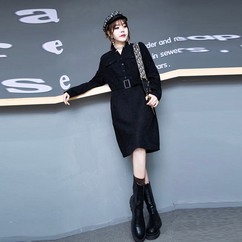 プラスサイズの女性の2020年フレンチニッチレトロスカート女性ヘップバーンスタイルリトルブラックドレスファットmmシェーミングベルトドレス ミックスインファッション24543063933