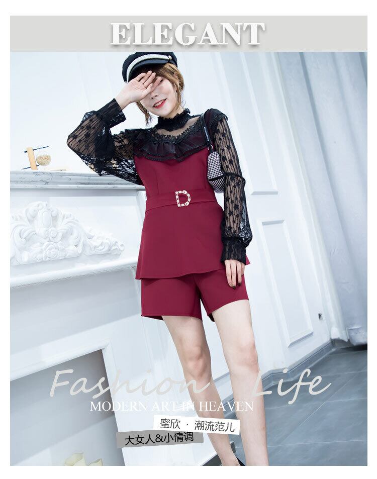 2020年新作秋ファットmmプラスサイズレディーススリムレースウエストトップツーピーススーツ年齢制限ショーツウエスタンスタイル秋 ミックスインファッション40559039659