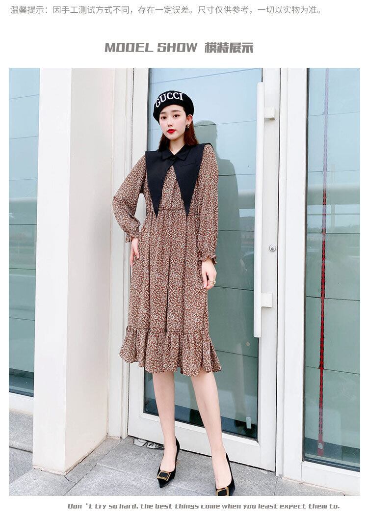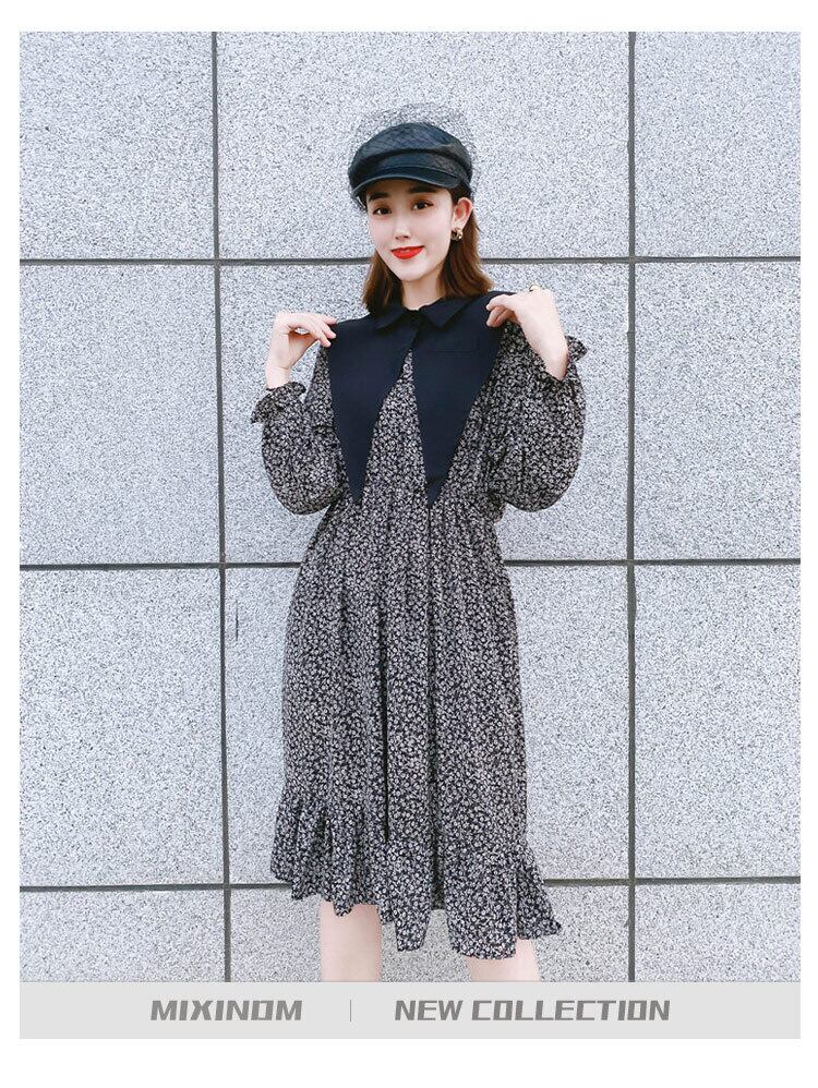 プラスサイズの女性の200kgの秋の太った姉妹のウエスタンスタイルのツーピースドレスは、薄く、ハイウエストで、大きな花柄のスカートでした ミックスインファッション48241805056