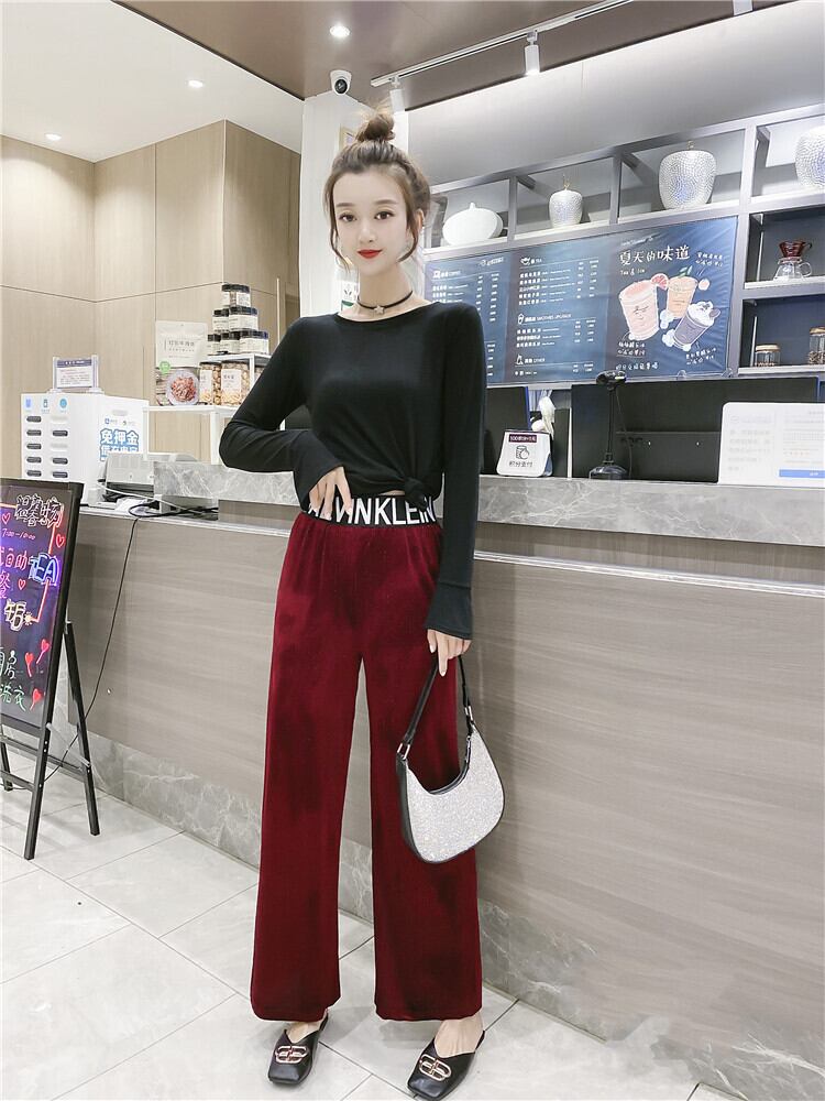 大きいサイズの太いmm秋の服ストレートと細い文字カジュアルパンツ女性の太った姉妹ルーズハイウエストワイドレッグパンツレディースパンツトレンド ミックスインファッション18461689846