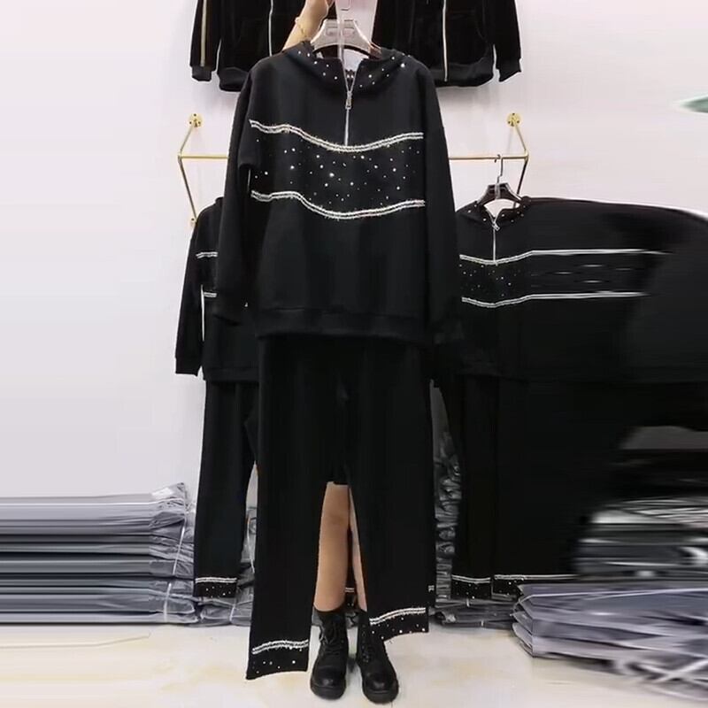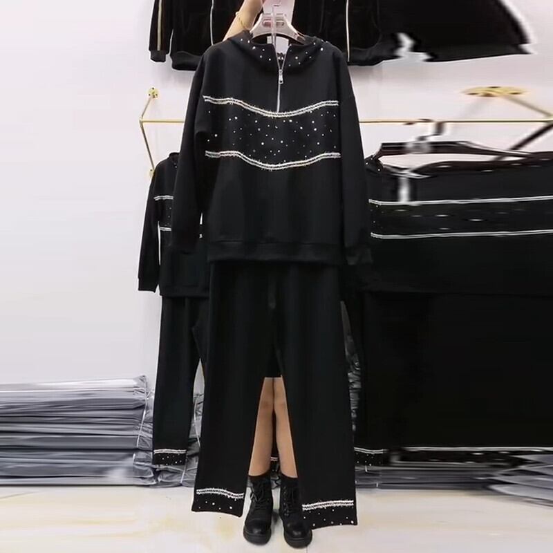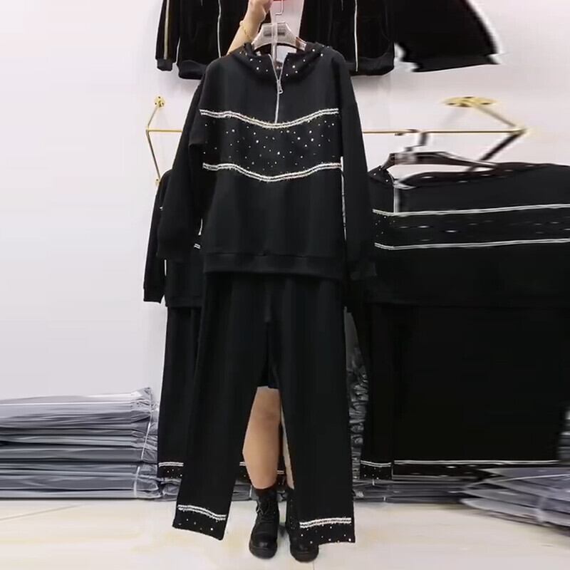 秋冬の衣類2020新しいフード付きTシャツトップツーピーススーツ洋風レディースパンツは薄手で、プラスサイズのレディースファットmm ミックスインファッション75332428324