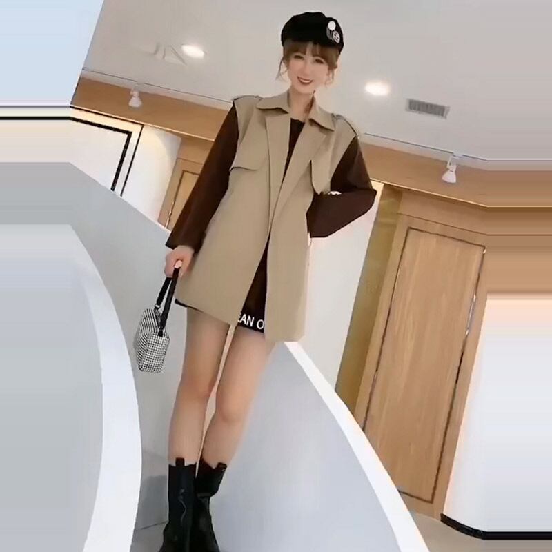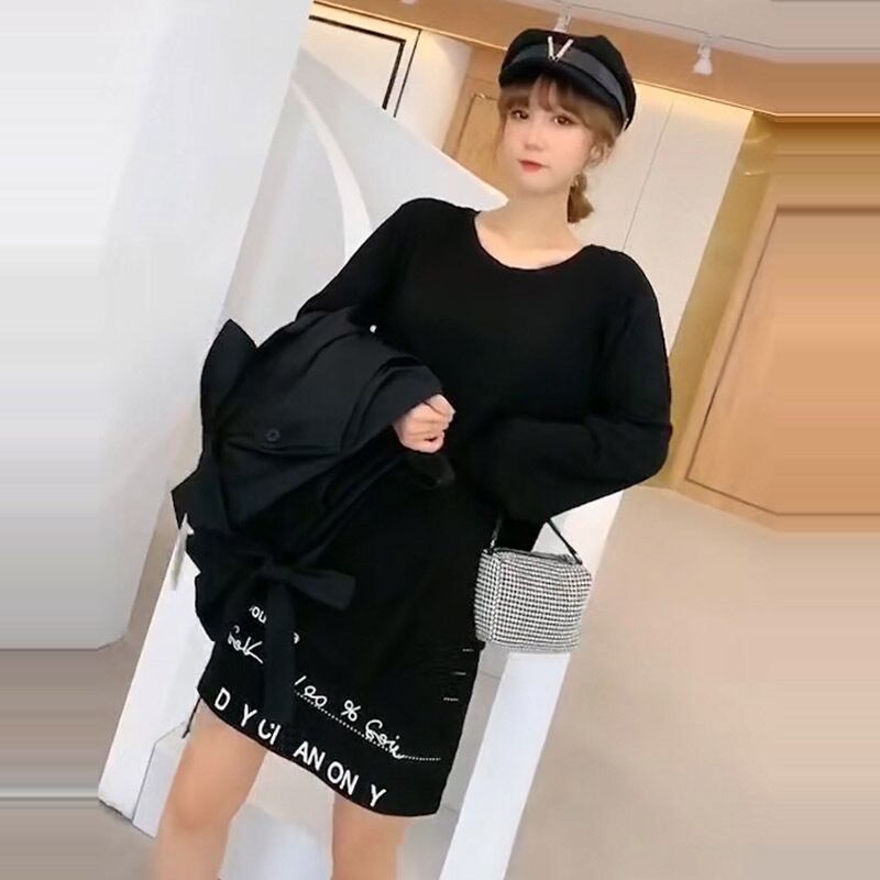 プラスサイズの女性の2020年秋の新しいファットシスターmmルーズチョッキジャケットeignスタイルの薄い長袖Tシャツ ミックスインファッション95638390178