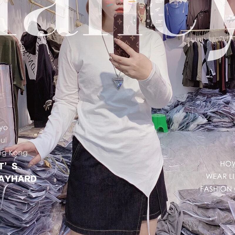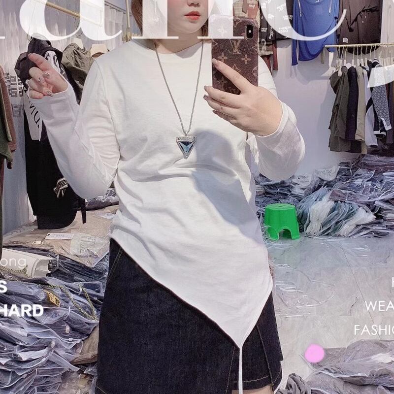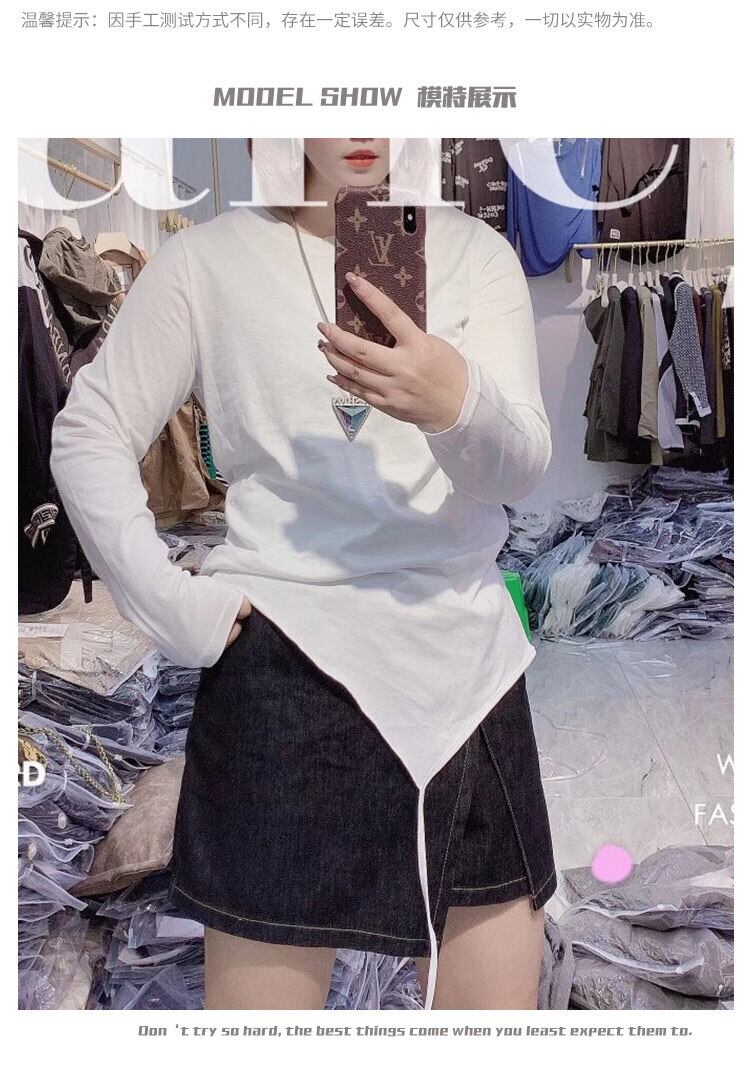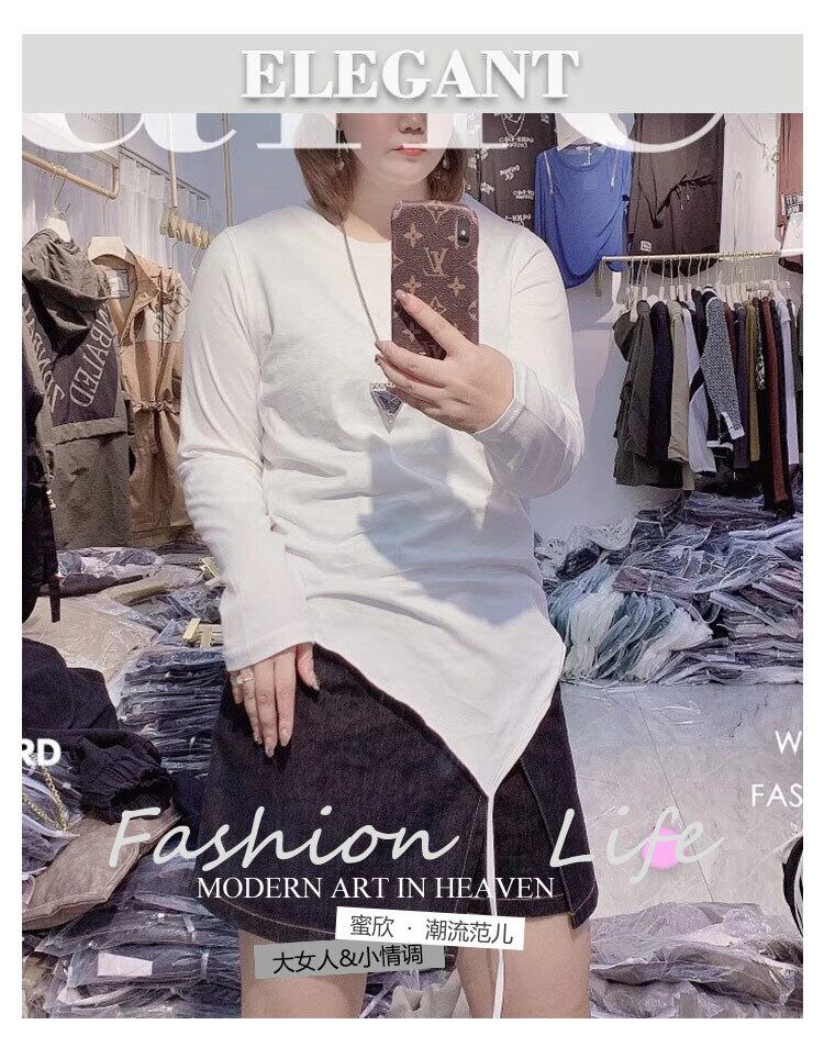 プラスサイズの女性の秋の服新しい脂肪mm薄いトップウエスタンスタイル200kg脂肪姉妹ルーズTシャツ不規則な潮 ミックスインファッション48539670544