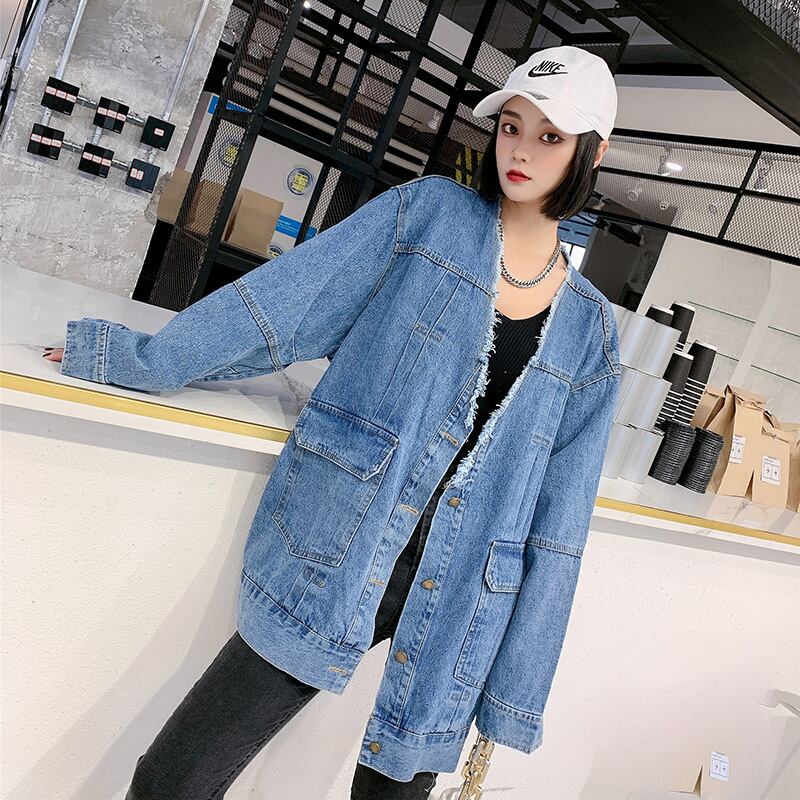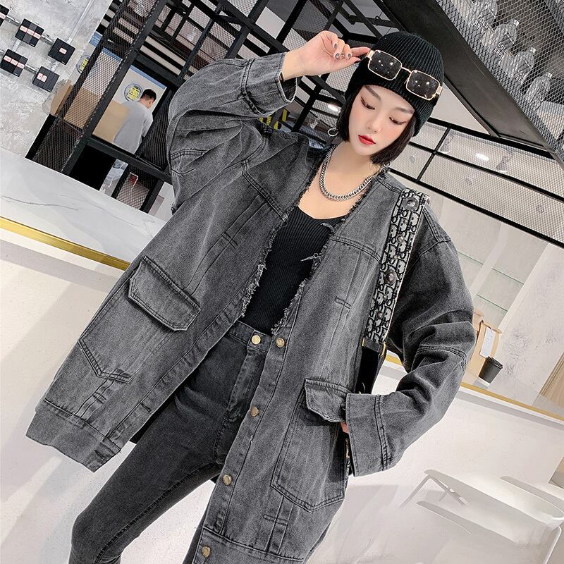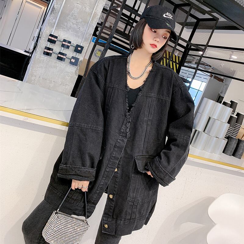 ミドル丈カジュアル擦り切れデニムベストプラスファットプラスサイズ200kgファットMM春秋ルーズジャケットレディース ミックスインファッション2499510512