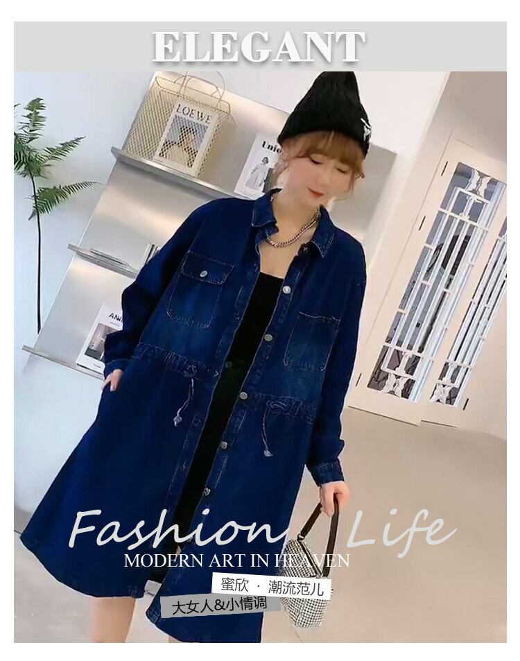 ファットMMエクストララージサイズのレディース秋の服新しいウエスタンスタイルは年齢を200kg減らしたルーズで薄いミドル丈のデニムウインドブレーカージャケット ミックスインファッション45866535772