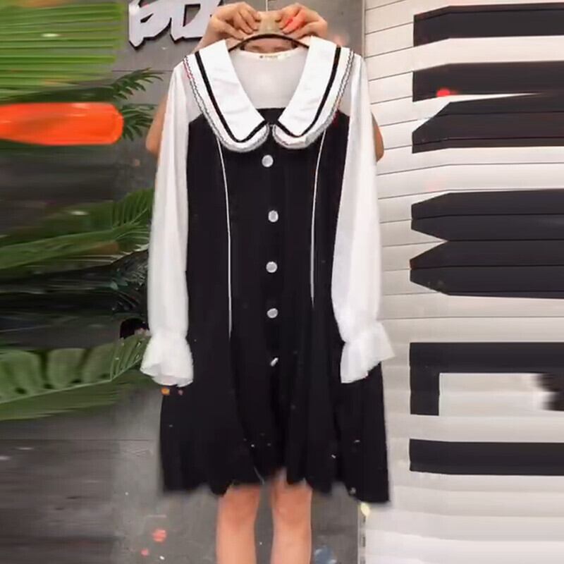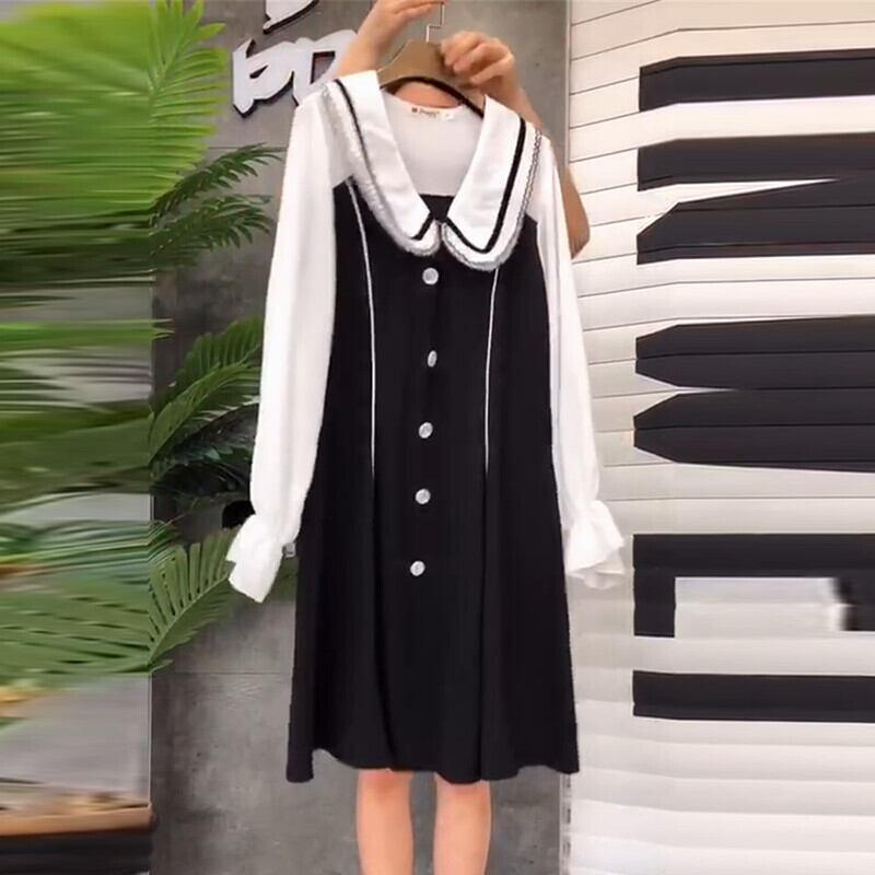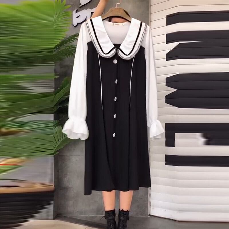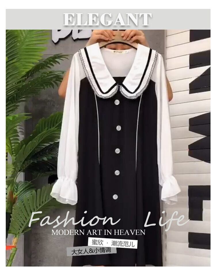 プラスサイズの女性の太いmmの黒のドレス、ウエストとスリムなデザインの気質スカート2020新しい秋の女性 ミックスインファッション26448208639