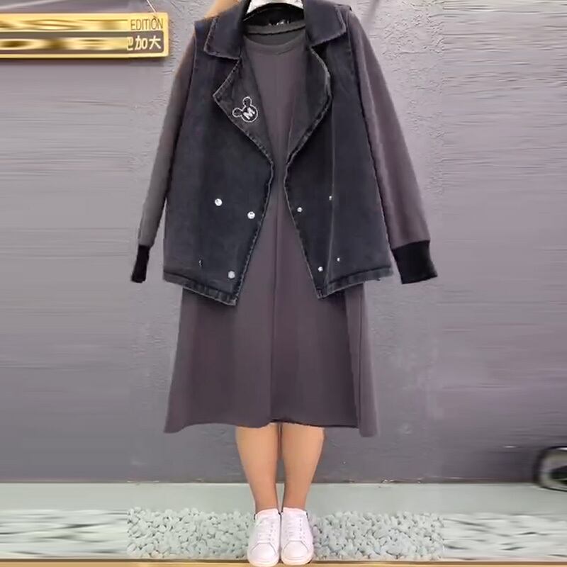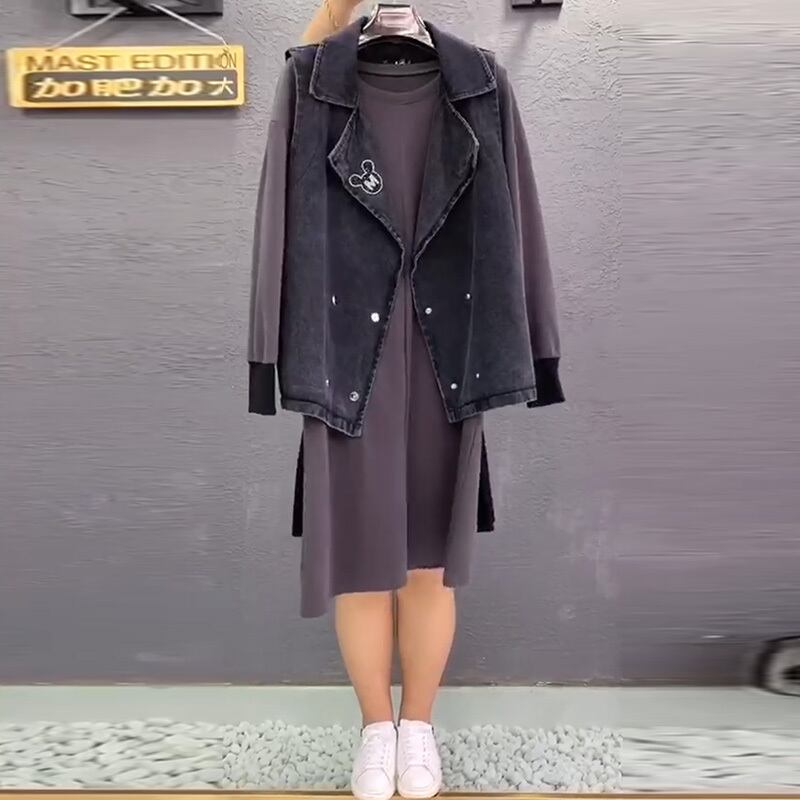 プラスサイズの女性の太った姉妹2020年秋新しいトップスーツウエスタンスタイルの薄いツーピースカバーミートドレス ミックスインファッション75204209929